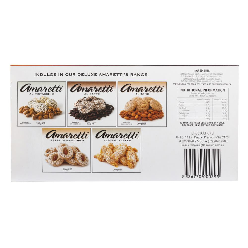 Indulge in the exquisite flavors of Crostoli King Biscuits Amaretti Assorted 200g. This delightful assortment offers a perfect balance of sweetness and crunch in every bite. Elevate your snacking experience with these traditional Italian treats that are sure to satisfy your cravings. Perfect for sharing or enjoying on your own, these biscuits are a must-have for any dessert lover.