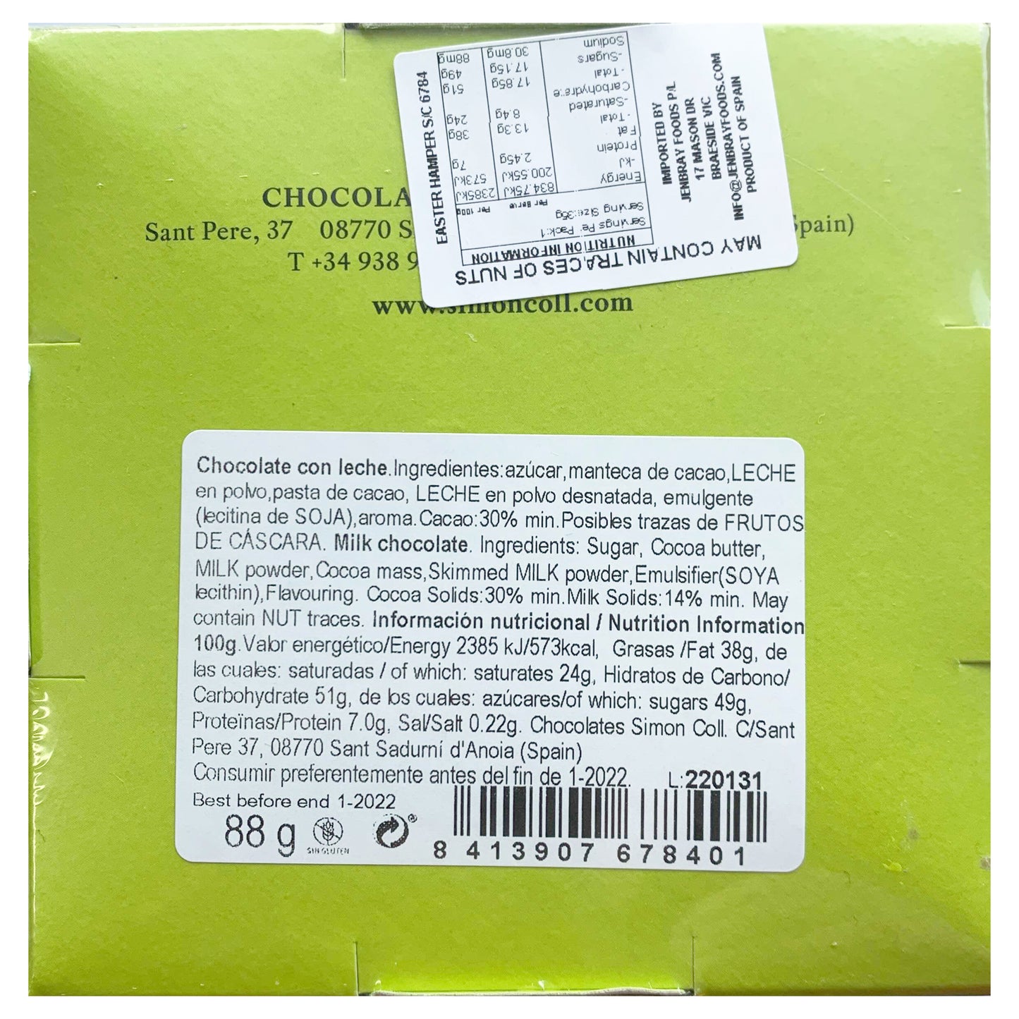 Indulge in the rich and creamy taste of Simon Coll Milk Chocolate Easter Basket. Perfect for gifting or enjoying yourself, this 88g treat is sure to satisfy your sweet cravings. Made with high-quality ingredients, this chocolate is a delightful way to celebrate the Easter season.