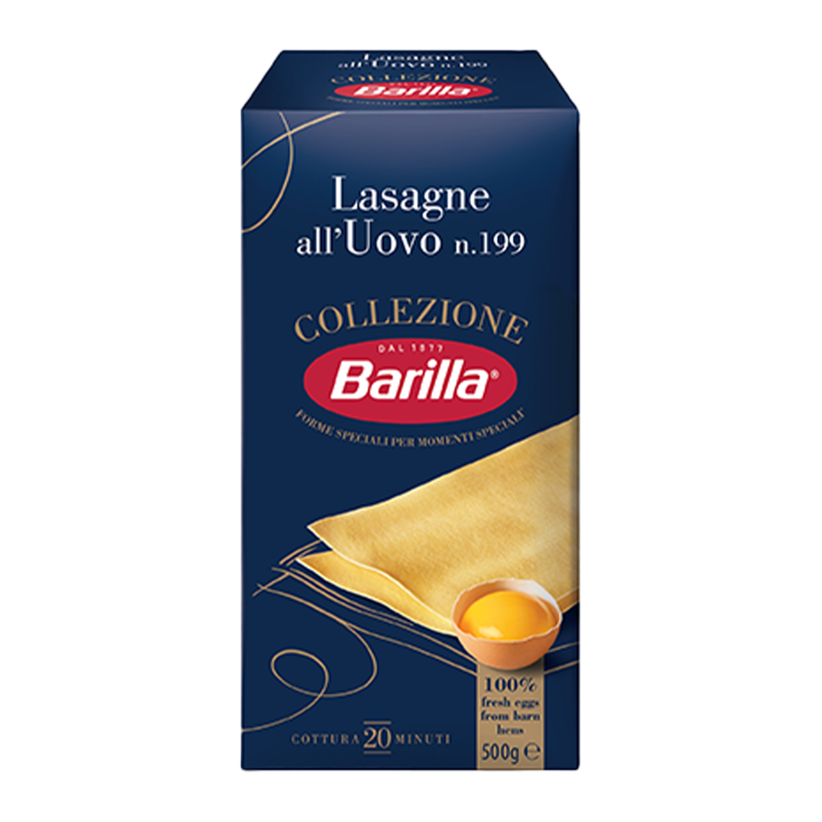 Barilla Collezione Lasagna All' uovo 500g: Elevate your homemade lasagna with our premium egg pasta sheets. Made with high-quality ingredients for a deliciously authentic Italian taste. Perfect for creating impressive and flavorful lasagna dishes that will delight your family and guests. Experience the difference with Barilla Collezione Lasagna All' uovo.