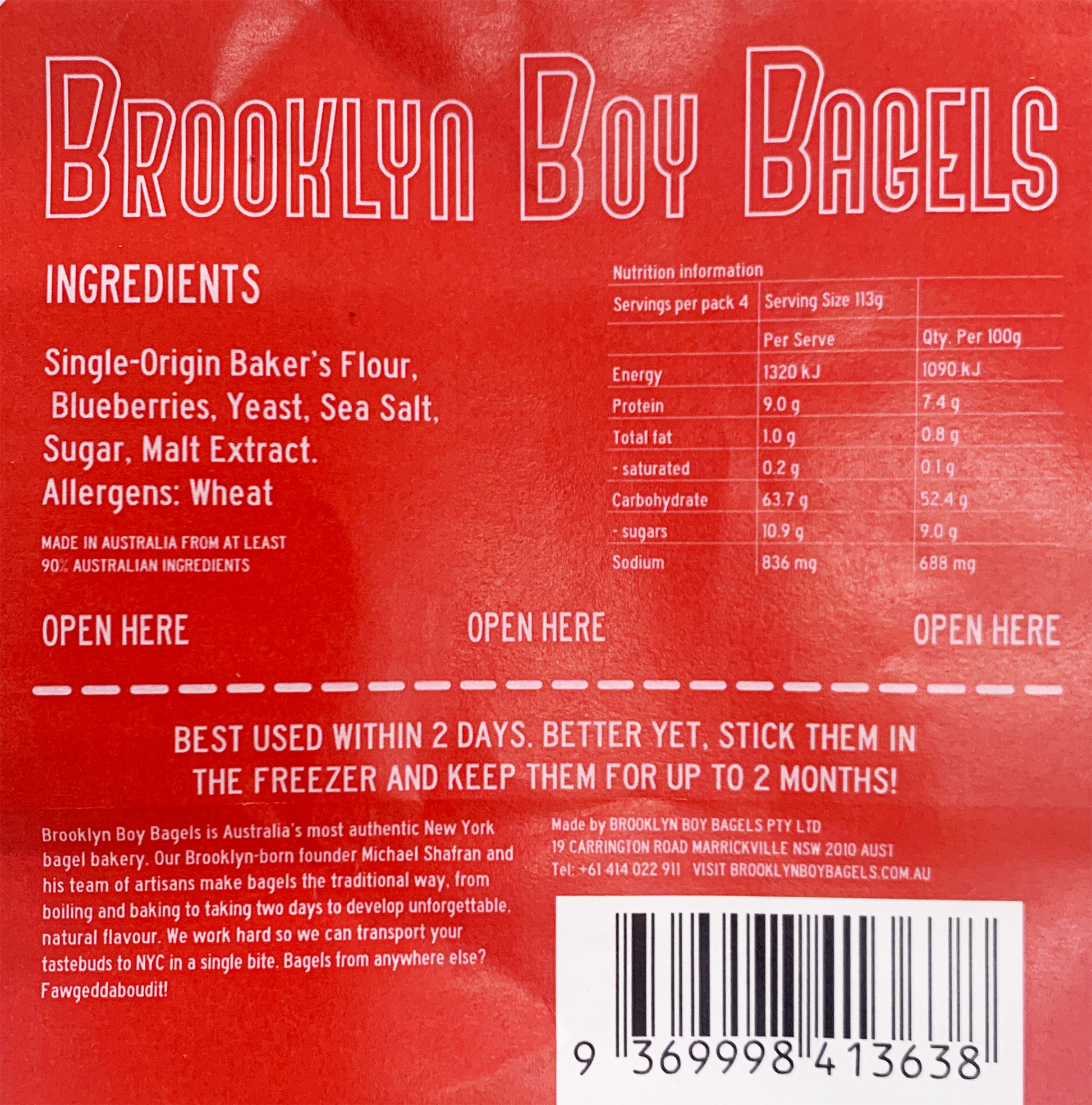 Brooklyn Boy Blueberry Bagels 4pk 450g