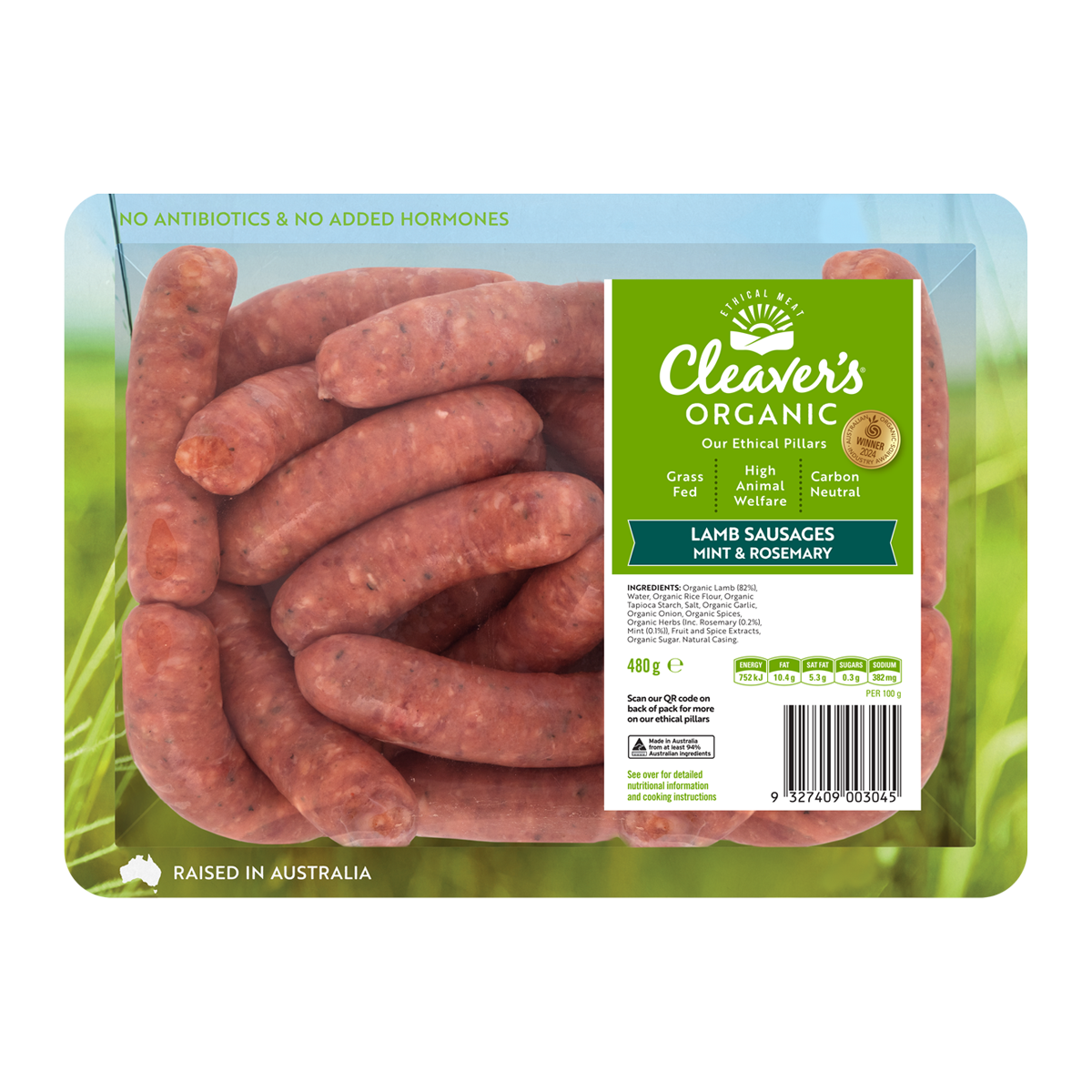 Cleaver's Organic Lamb and Rosemary Sausages 480g