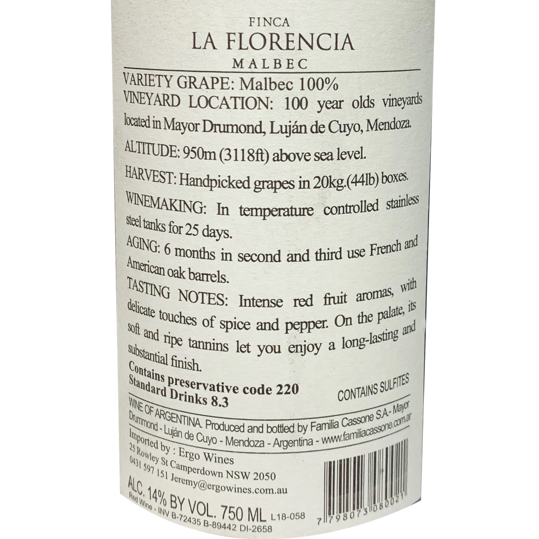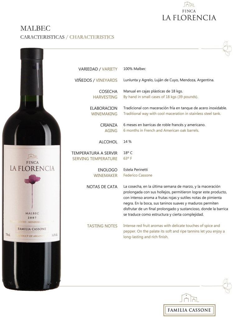 Familia Cassone Malbec Finca La Florencia Mendoza Argentina Case 12x750ml