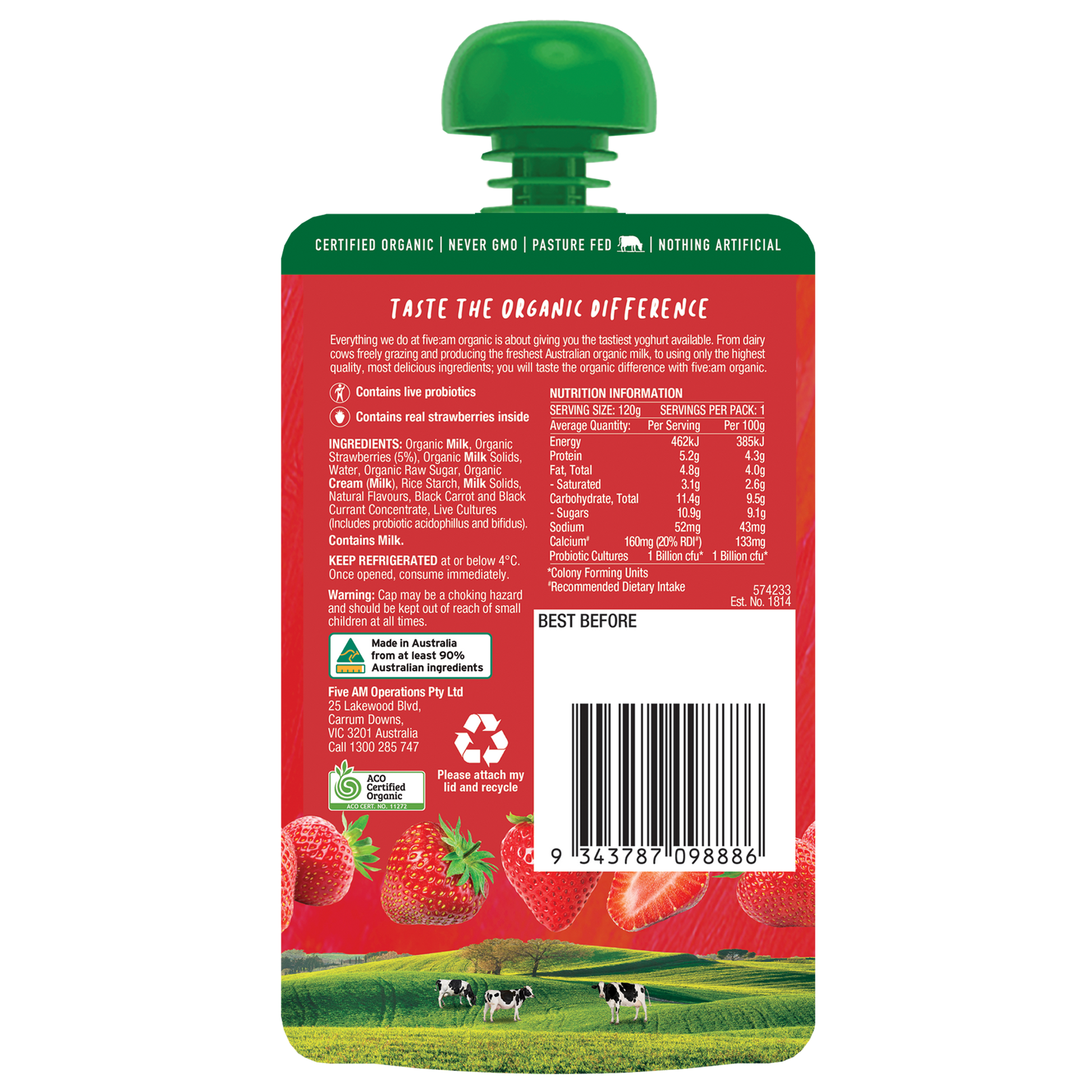 Five AM Strawberry Organic Kids Yoghurt 120g