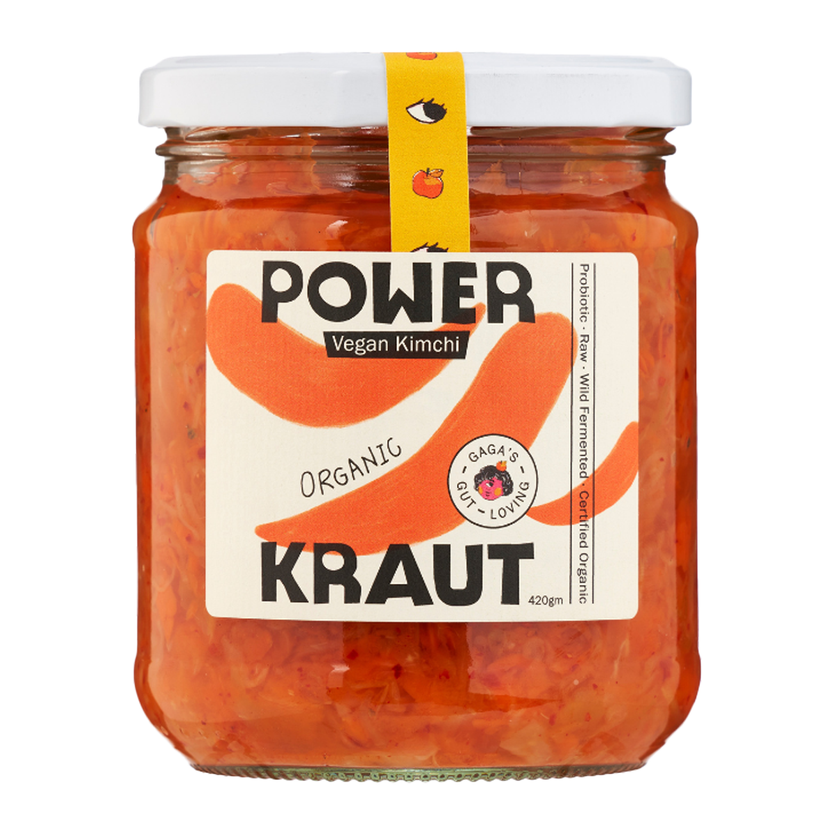 Gaga's Organic PowerKraut Vegan Kimchi 450g is a probiotic powerhouse that boosts gut health and supports digestion. Made with organic ingredients, this tangy and spicy kimchi is packed with nutrients and flavor. Enjoy the benefits of a healthy gut with every delicious bite!