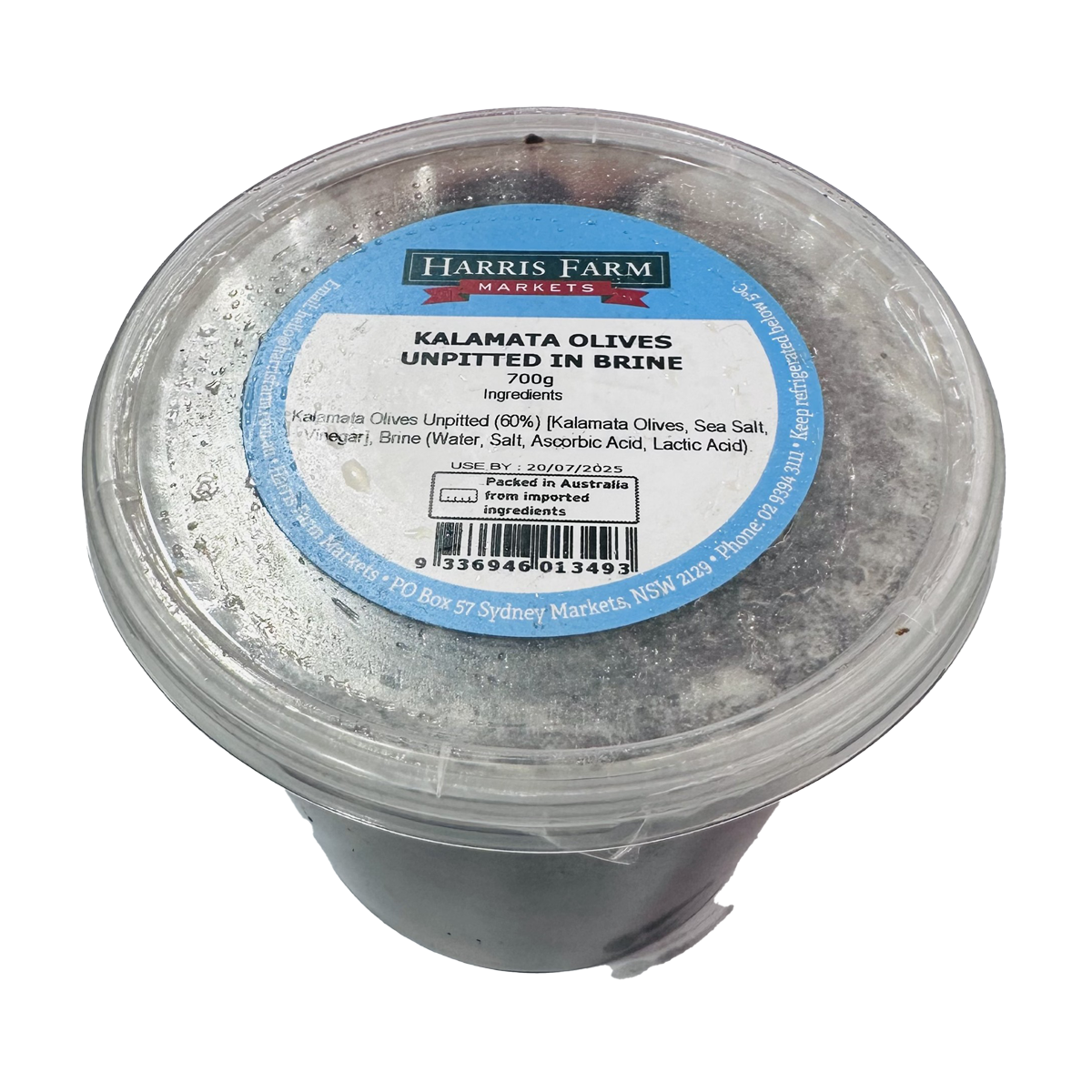 Harris Farm Kalamata Olives Unpitted 700g are rich in flavor and perfect for snacking, salads, and cooking. Packed with antioxidants and healthy fats, these olives are a delicious addition to your meals. Enjoy the convenience of a large 700g jar that ensures you always have a tasty and nutritious snack on hand.