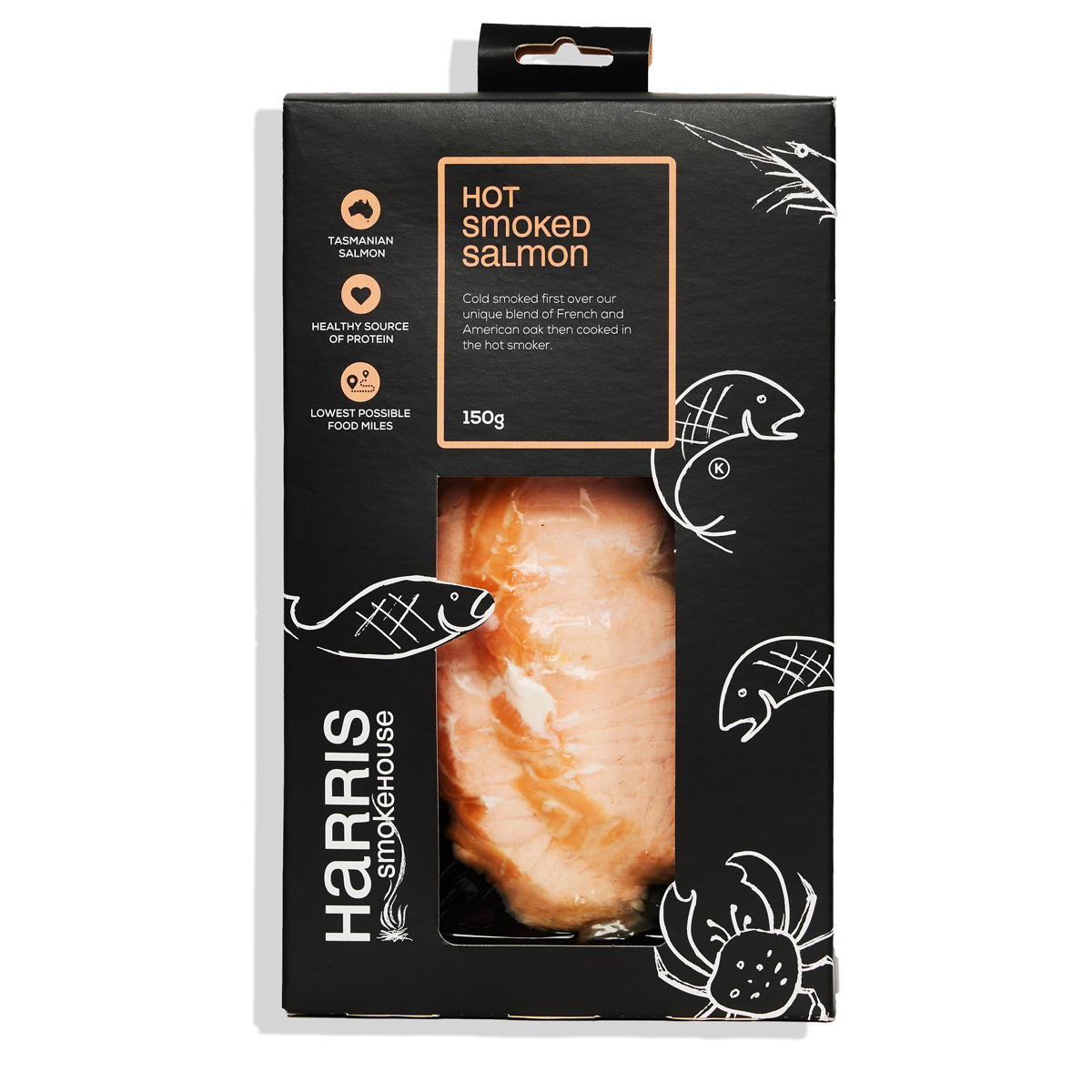 Harris Smokehouse Hot Smoked Salmon 150g: Indulge in premium, handcrafted hot smoked salmon bursting with rich flavor and omega-3 goodness. Elevate your meals with this gourmet delicacy, perfect for health-conscious foodies and seafood lovers. Enjoy the convenience of a ready-to-eat, protein-packed treat that's sustainably sourced and expertly smoked to perfection. Experience luxury dining at home with Harris Smokehouse Hot Smoked Salmon.