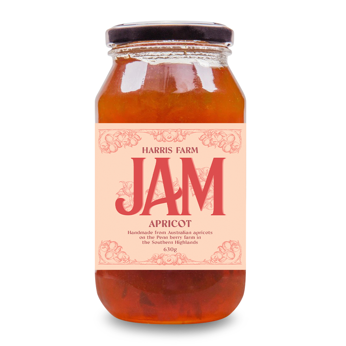 Harris Farm Jam Apricot 620g: Enjoy the rich, natural flavor of ripe apricots in every spoonful. Made with premium ingredients for a delicious spread perfect for toast, pastries, and more. Elevate your breakfast or snack time with this delectable jam.