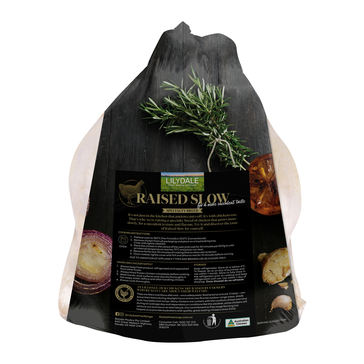 Lilydale Raised Slow Chicken 1.5-2kg: Enjoy tender, flavorful chicken raised with care. Perfect for a delicious and wholesome meal.