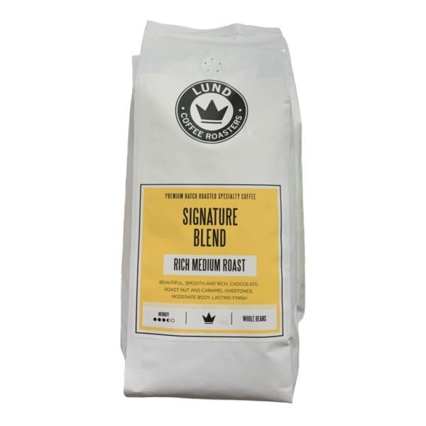 Lund Coffee Roasters Signature Blend Beans 1kg: Indulge in rich, aromatic coffee with our premium blend. Crafted to perfection, these beans deliver a smooth, bold flavor with every sip. Elevate your coffee experience with Lund Coffee Roasters.