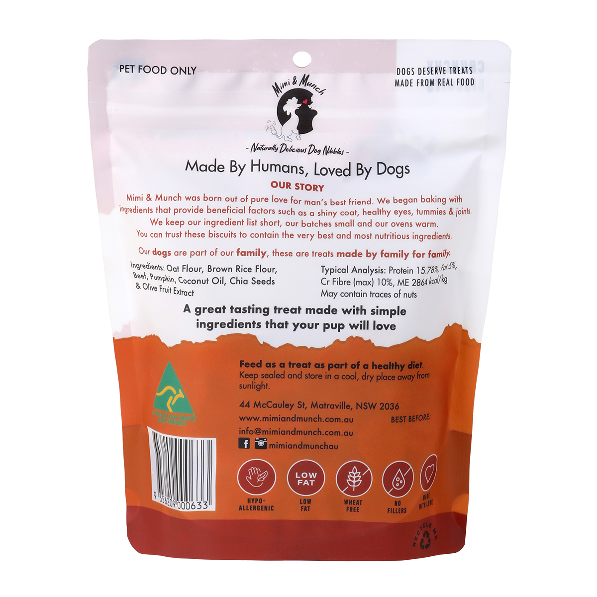 Mimi & Munch Beef Burger Biscuits 180g are delicious, all-natural treats that will have your furry friend begging for more. Made with real beef, these biscuits are a healthy and tasty snack that your dog will love. Treat your pup to the best with Mimi & Munch Beef Burger Biscuits!