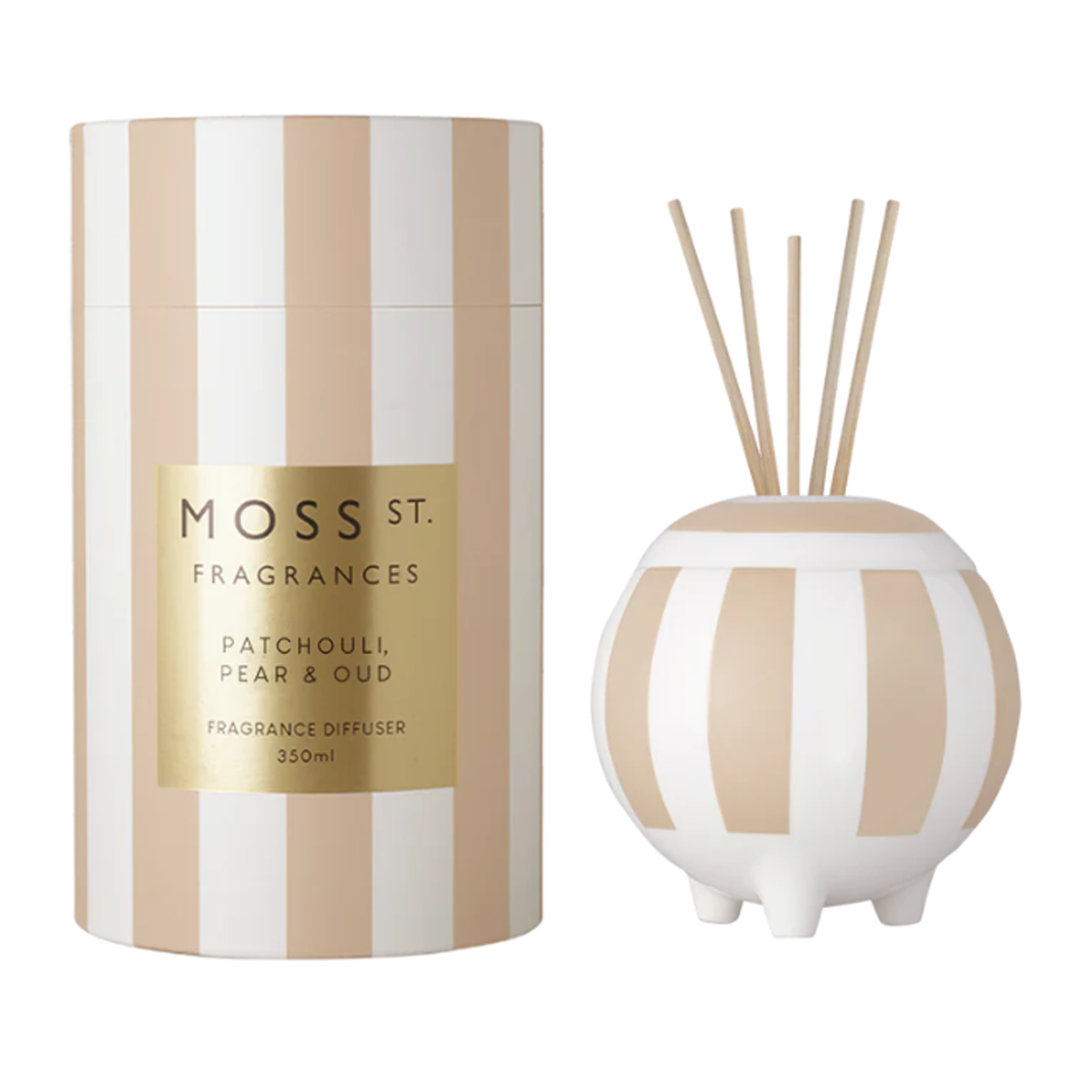 Transform your space with the luxurious Moss St Diffuser in Patchouli, Pear & Oud. This 350ml diffuser offers a long-lasting, captivating scent that will elevate your home ambiance. Embrace relaxation and sophistication with every breath.