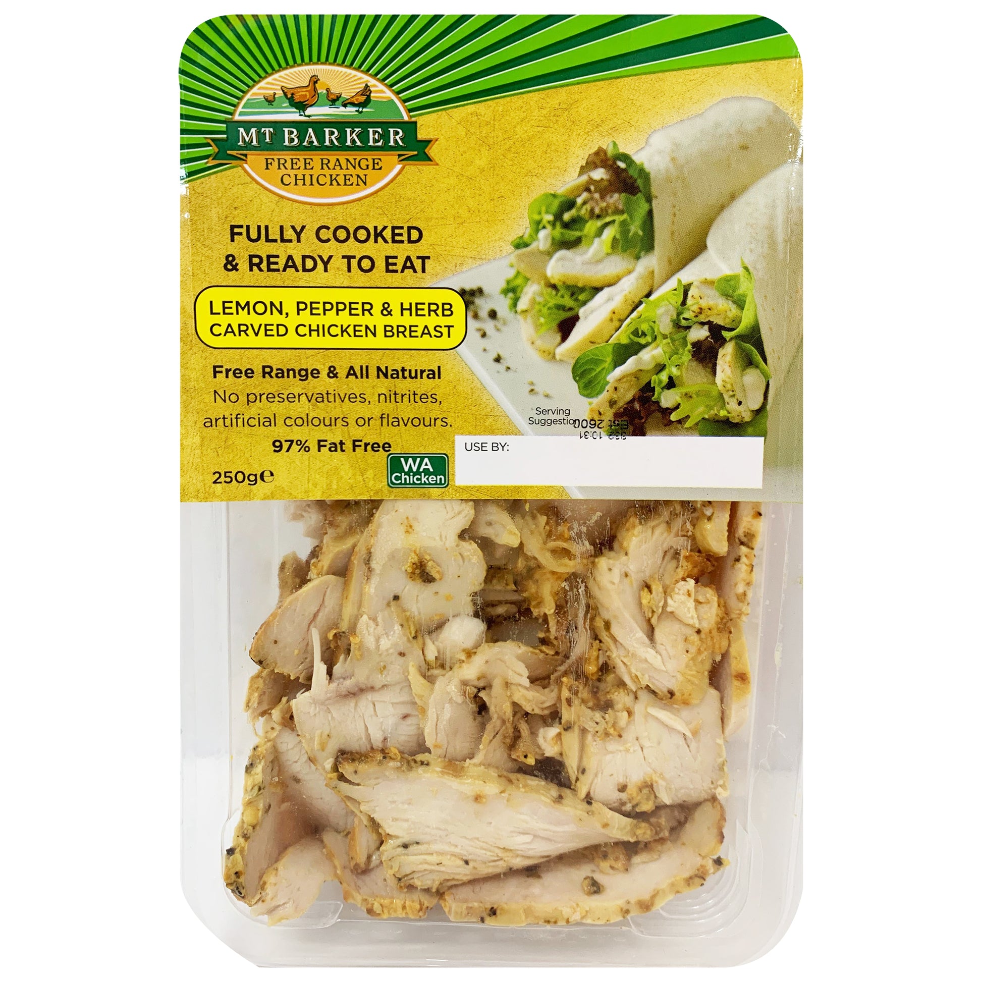 Mt Barker Fully Cooked and Ready to Eat Lemon, Pepper and Herb Carved Chicken Breast 250g