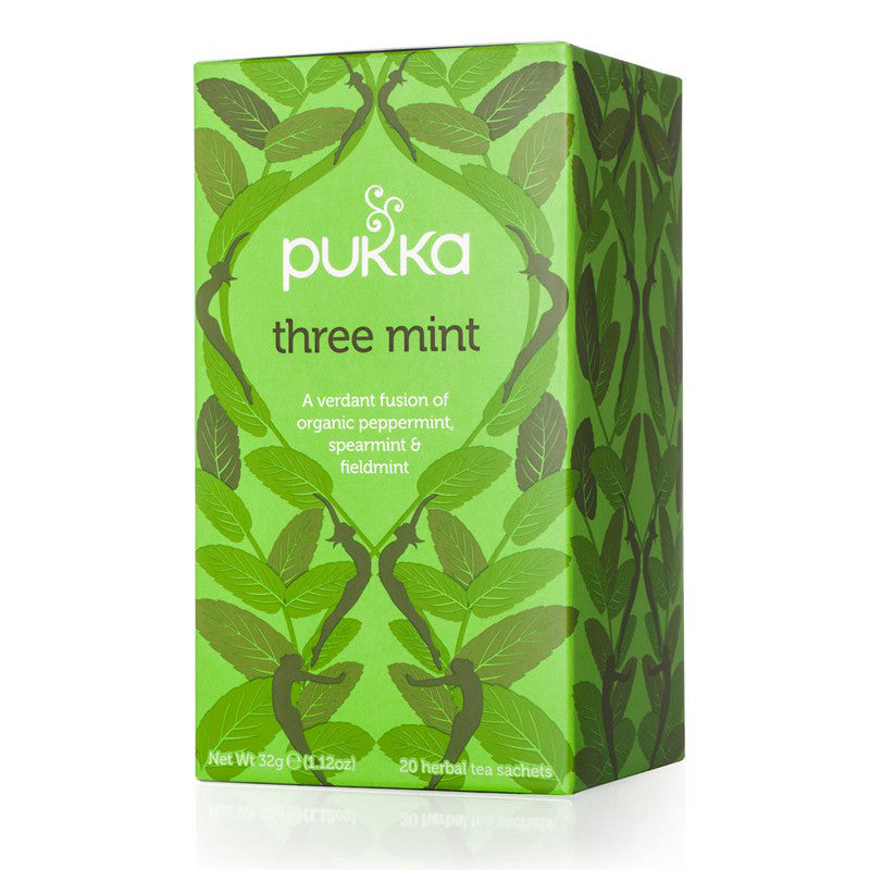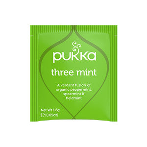 Pukka Three Mint Teabags x20 32G: Refresh your senses with a blend of peppermint, spearmint, and fieldmint. Enjoy a soothing and invigorating cup of organic tea packed with natural goodness. Perfect for a moment of calm in your busy day.