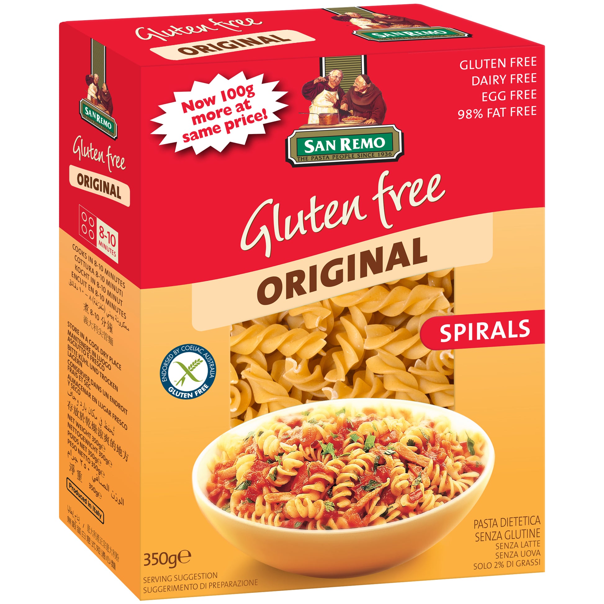San Remo Gluten Free Pasta Spirals 350g: Enjoy delicious pasta without gluten. Made from high-quality ingredients for a satisfying meal. Perfect for those with dietary restrictions or looking for a healthier option. Try it today and savor the taste of authentic Italian pasta!