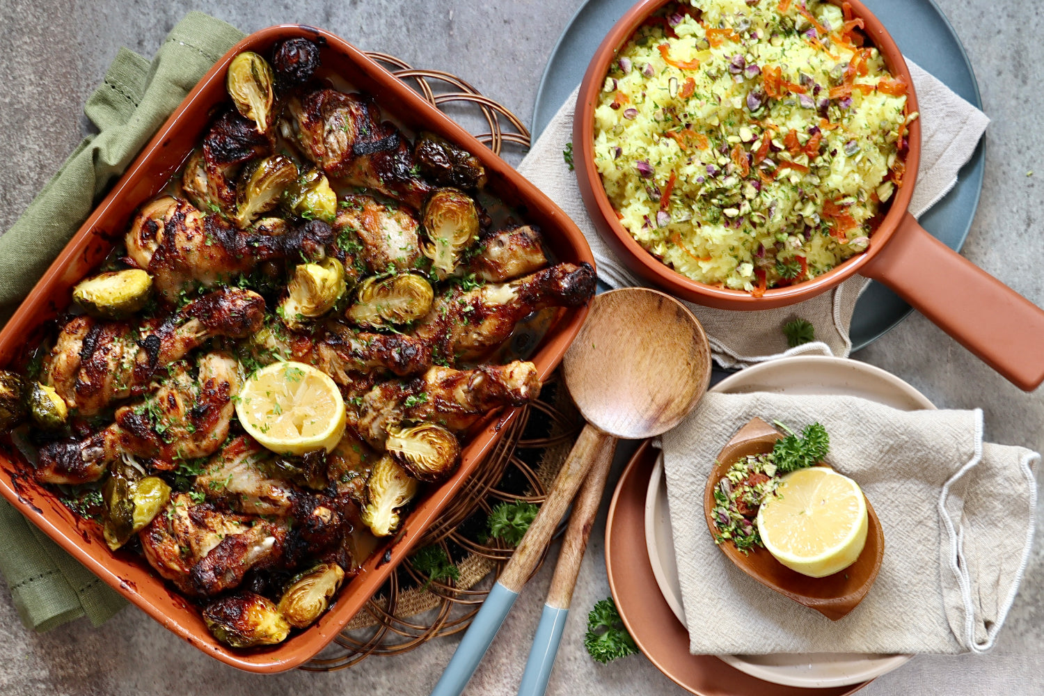 Tahini and Honey Chicken Drumsticks - with Turmeric and Pistachio Rice