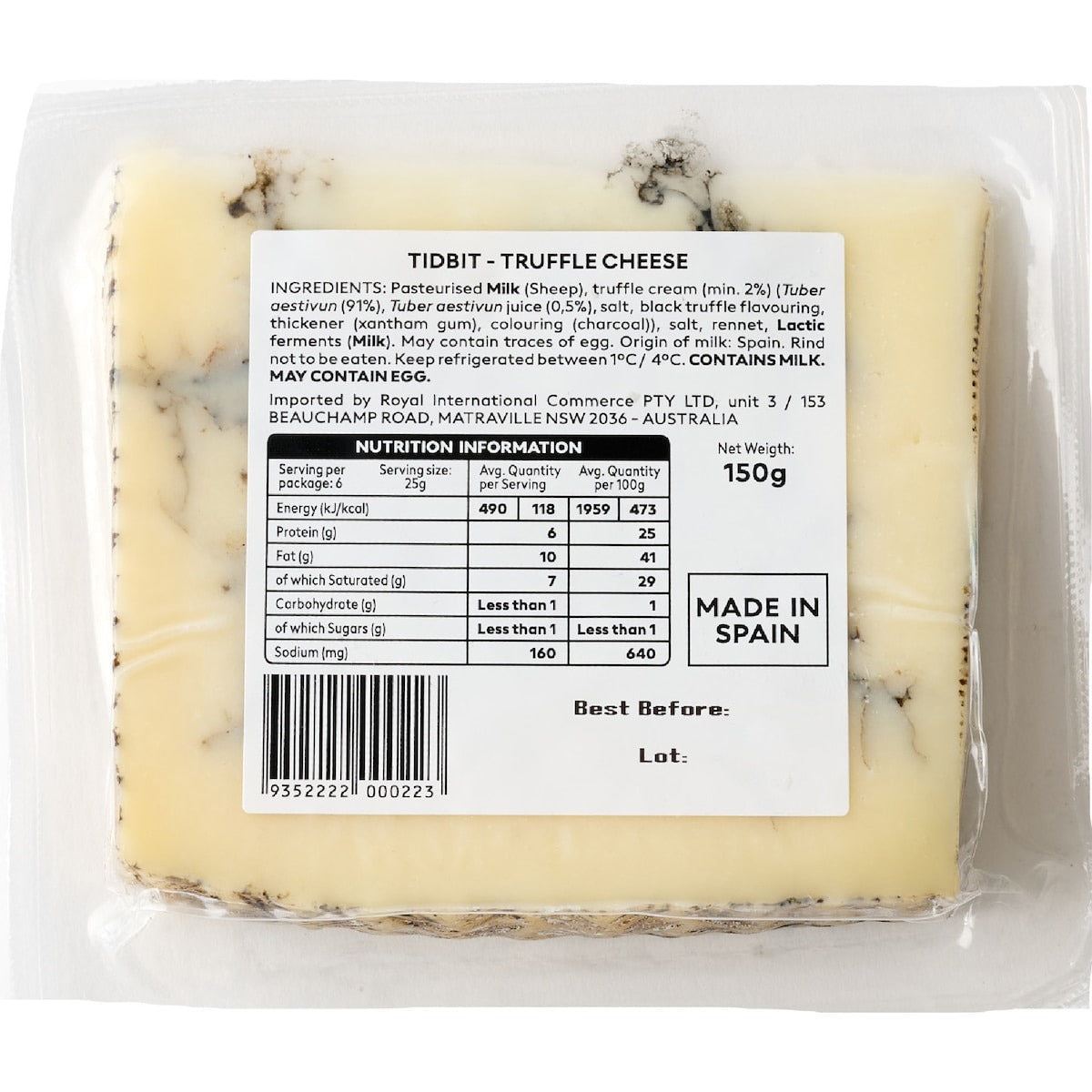 Indulge in the rich and savory flavors of Tidbit Truffle Spanish Cheese. Made from high-quality ingredients, this 150g cheese is a gourmet delight that will elevate your culinary experience. Perfect for cheese lovers looking to add a touch of luxury to their dishes.