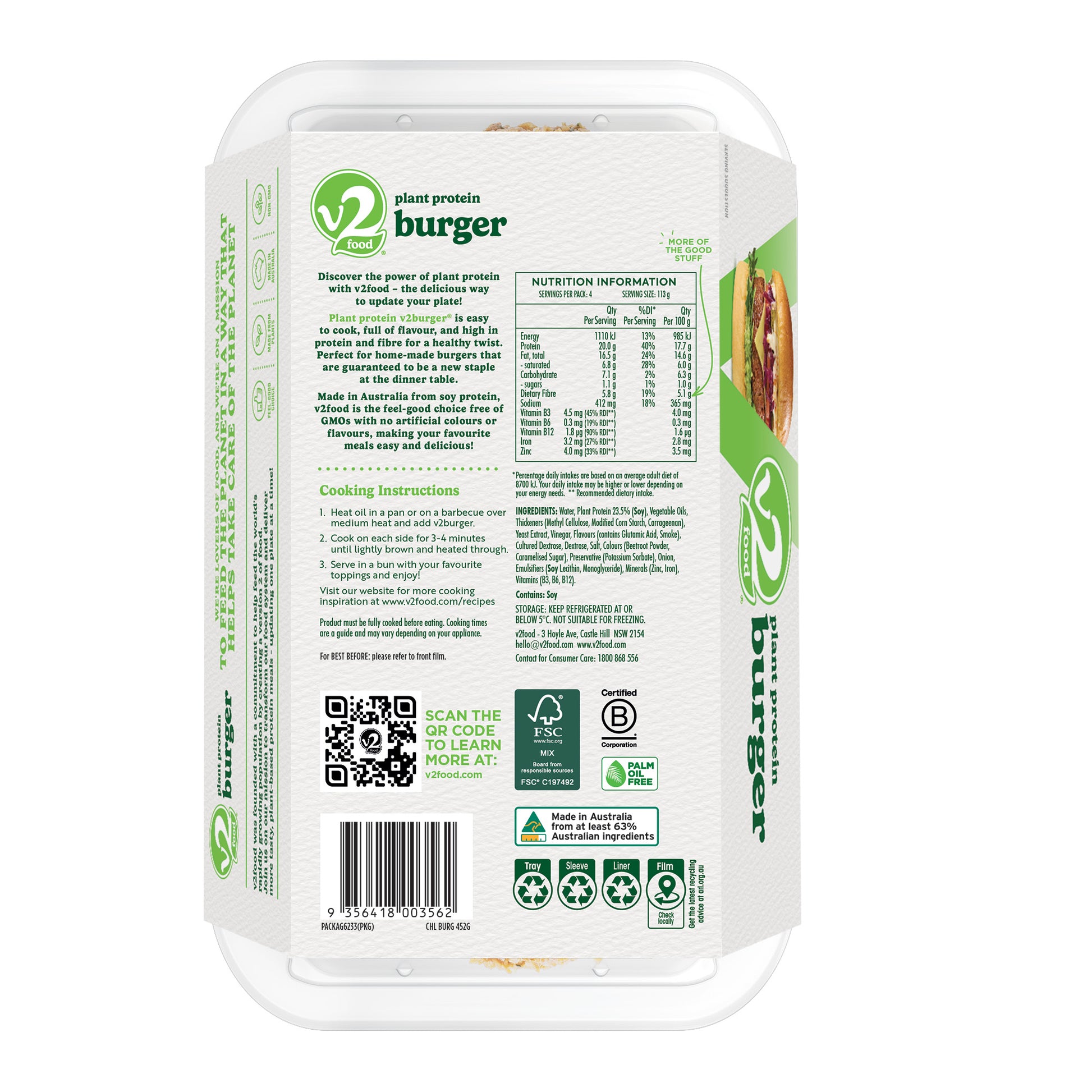 V2Food Plant Protein Burgers x4 452g are delicious, plant-based burgers packed with protein and flavor. Enjoy a satisfying meal that's good for you and the planet. Perfect for vegans, vegetarians, and anyone looking to add more plant-based options to their diet. Try them today and experience the future of food!