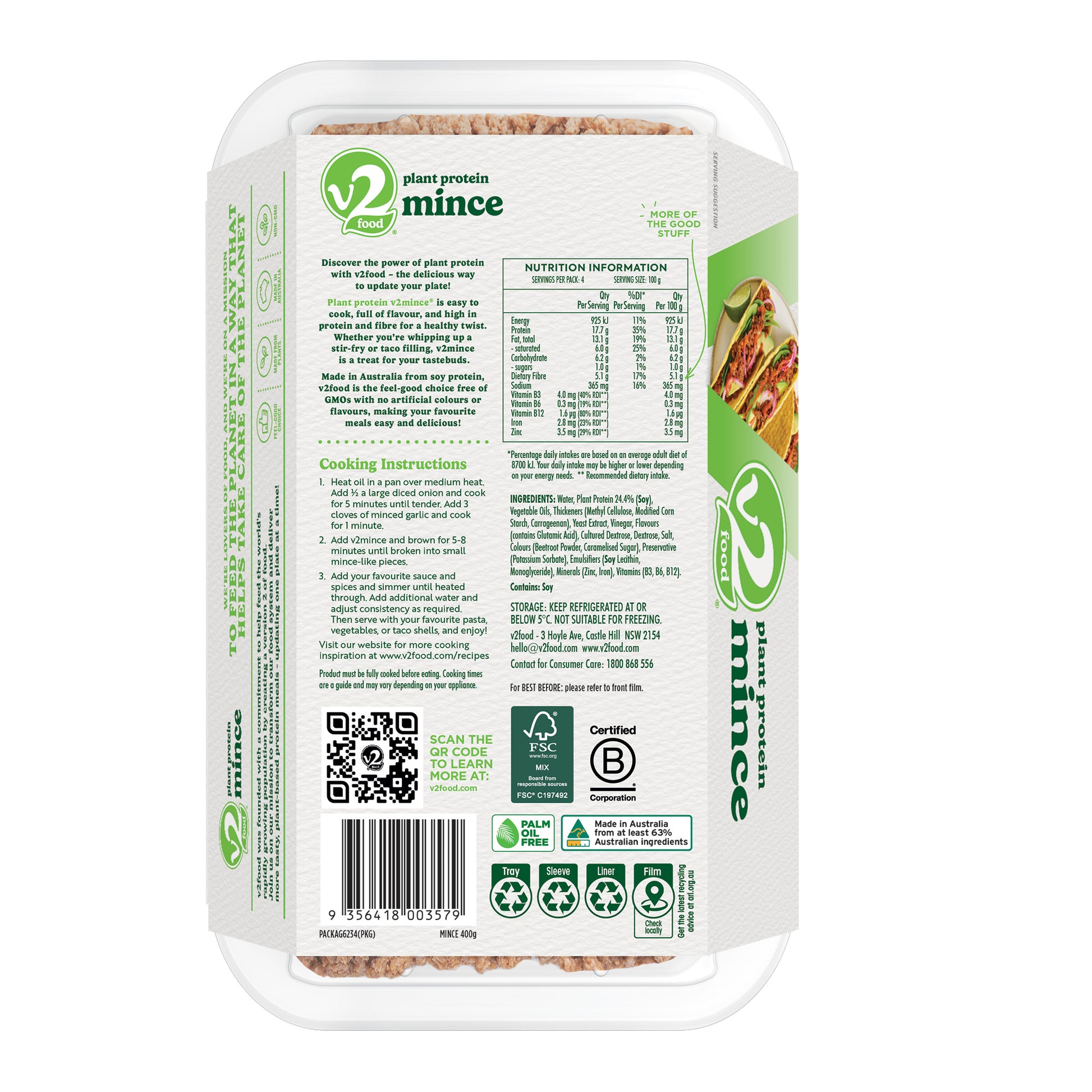 V2Food Plant Protein Mince 400g is a delicious and nutritious meat alternative that is packed with protein and free from animal products. Perfect for those looking to reduce their meat consumption without compromising on taste or texture. Try it in your favorite recipes for a healthy and sustainable meal option.