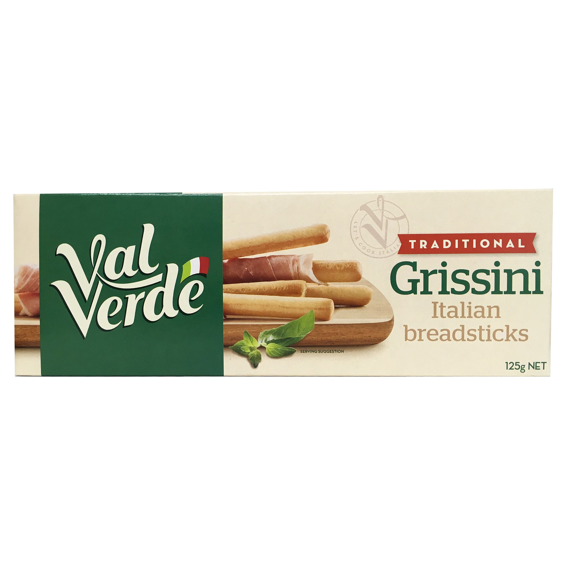 Val Verde Traditional Grissini 125g: Enjoy the authentic Italian taste of crispy breadsticks with Val Verde's handcrafted recipe. Perfect for snacking, entertaining, or pairing with your favorite dips. Elevate your culinary experience with these light and flavorful grissini.