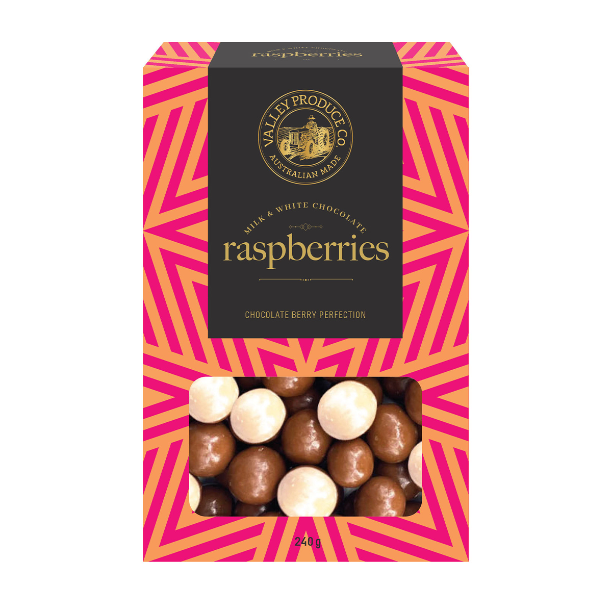 Valley Produce Co Milk & White Chocolate Raspberries 220g