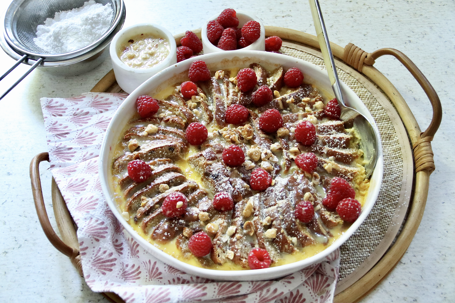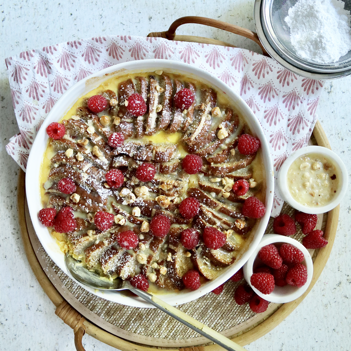 White Chocolate and Hazelnut Hot Cross Bun Pudding
