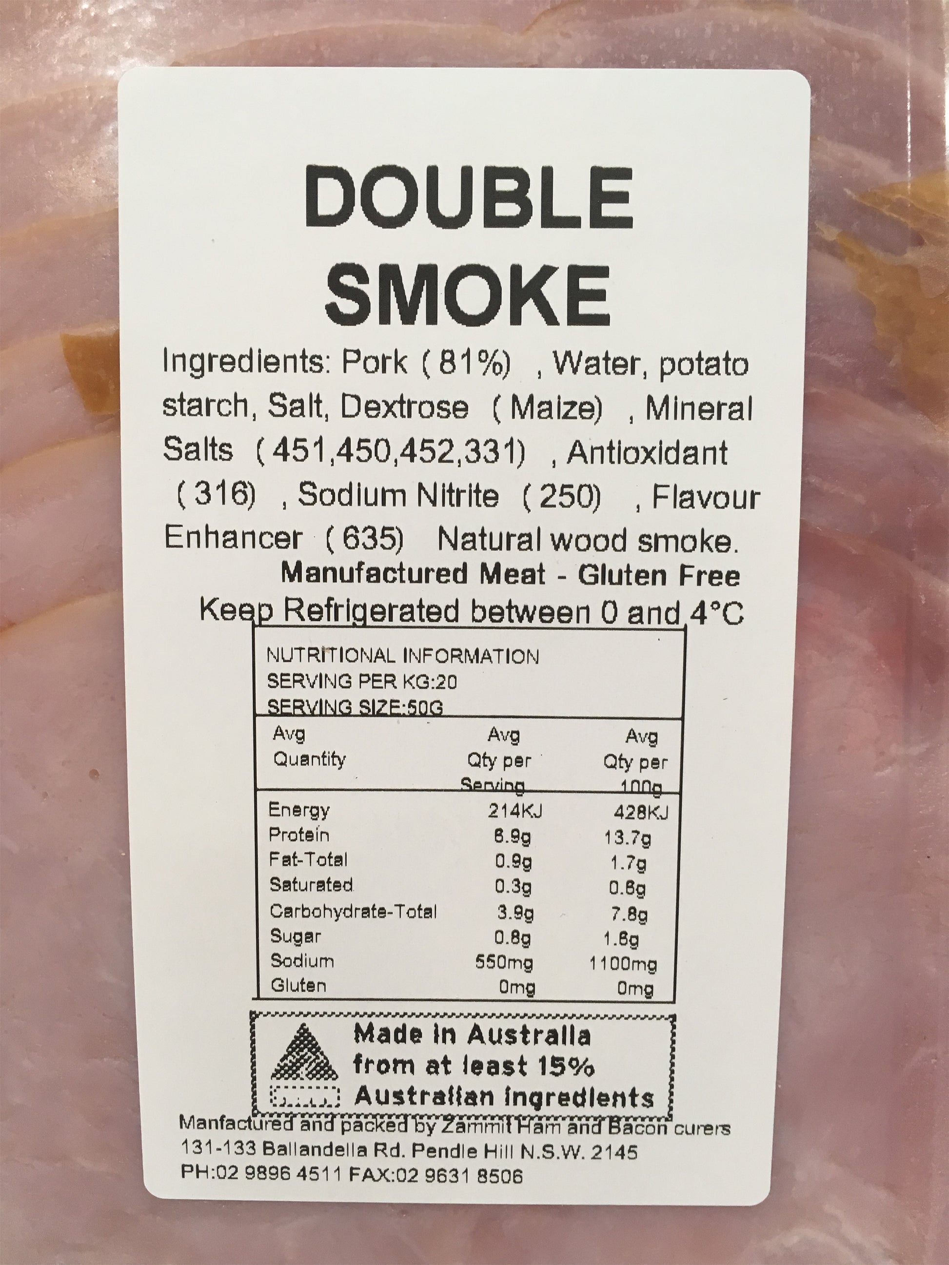 Zammit Double Smoke Ham 150g: Indulge in premium quality, double smoked ham that is rich in flavor and irresistibly tender. Perfect for sandwiches, salads, and charcuterie boards. Elevate your meals with this gourmet ham that is sure to impress.