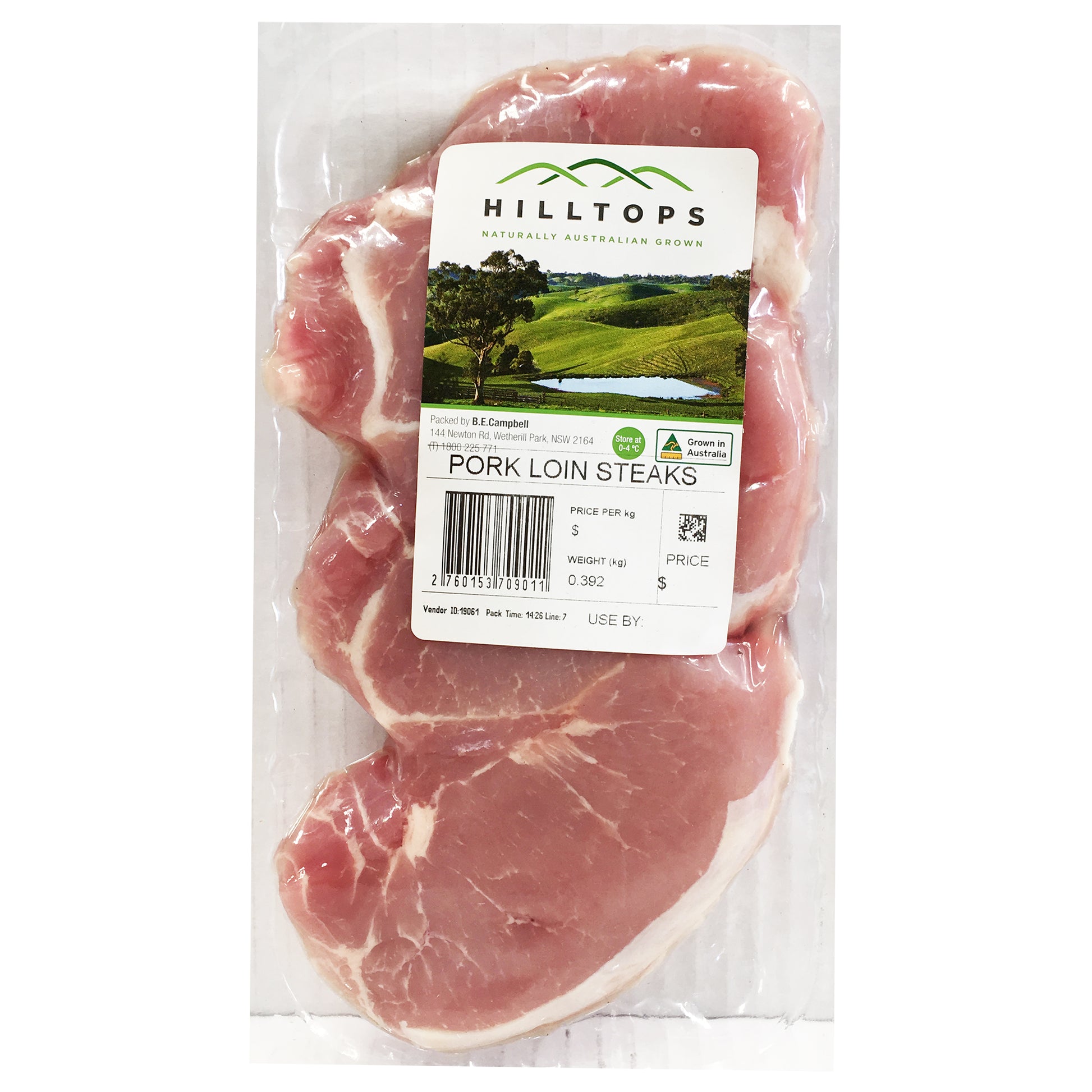 Tender and flavorful Pork Loin Steaks (300-450g) from Hilltop. Perfect for a delicious and satisfying meal.