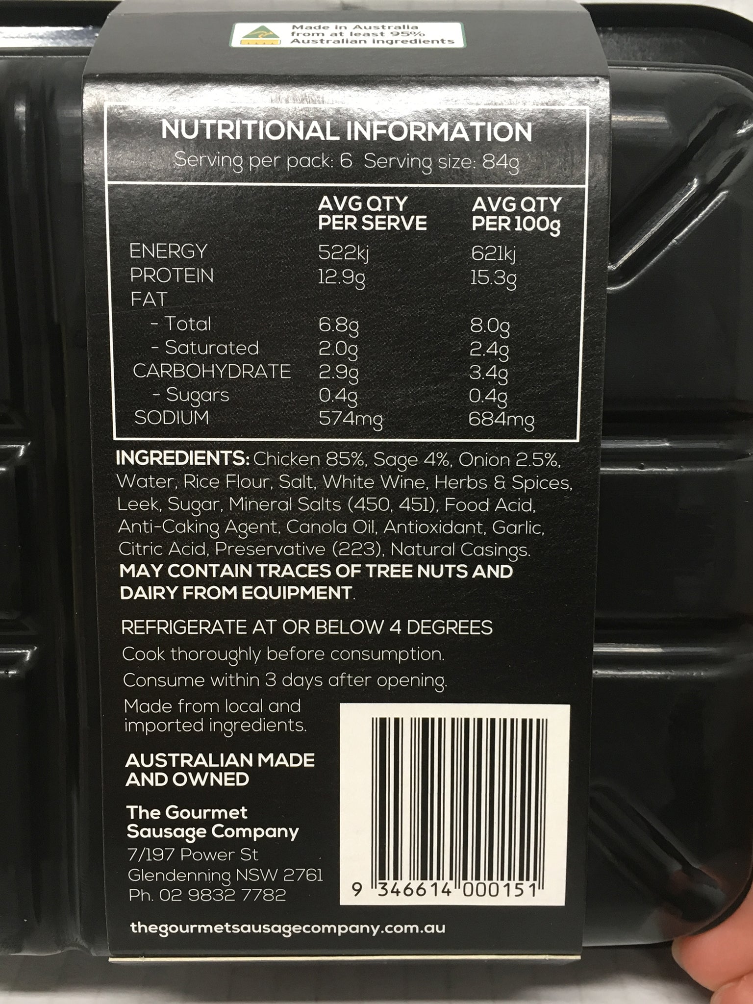 The Gourmet Sausage Chicken Sage and Roasted Onions Sausages