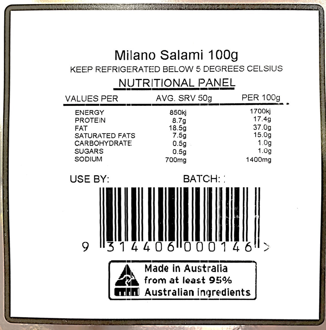 B-B Products Salami Milano 100g: Indulge in premium Italian salami, crafted with authentic Milanese flavors. Perfect for charcuterie boards, sandwiches, or as a savory snack. Elevate your culinary creations with this exquisite delicacy.