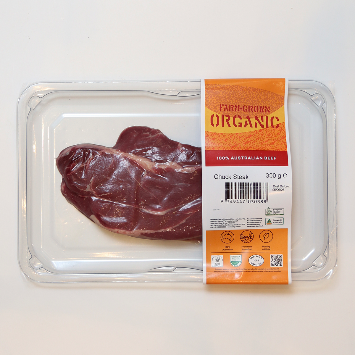 Tender and flavorful Farm Grown Organic Chuck Steak, weighing 300g. Sustainably sourced and free from harmful chemicals, this premium cut promises a delicious and guilt-free dining experience. Ideal for health-conscious foodies seeking a high-quality, organic protein option.
