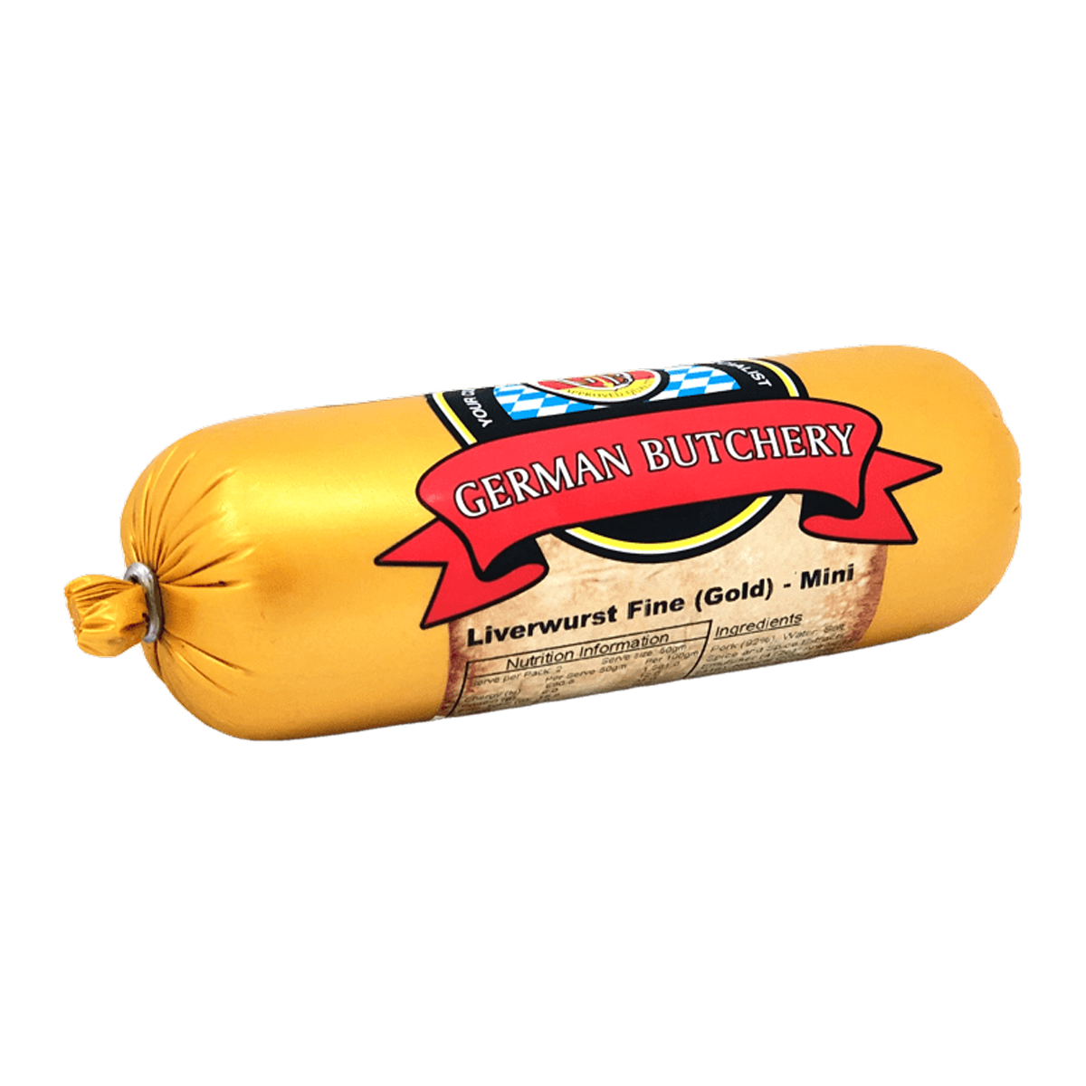German Butchery Gold Liverwurst Fine 200g: Indulge in the rich, creamy goodness of our premium Gold Liverwurst. Made with the finest ingredients, this traditional German delicacy is a savory treat for any occasion. Elevate your charcuterie board or sandwich with the authentic taste of Germany. Experience luxury in every bite with German Butchery Gold Liverwurst Fine 200g.