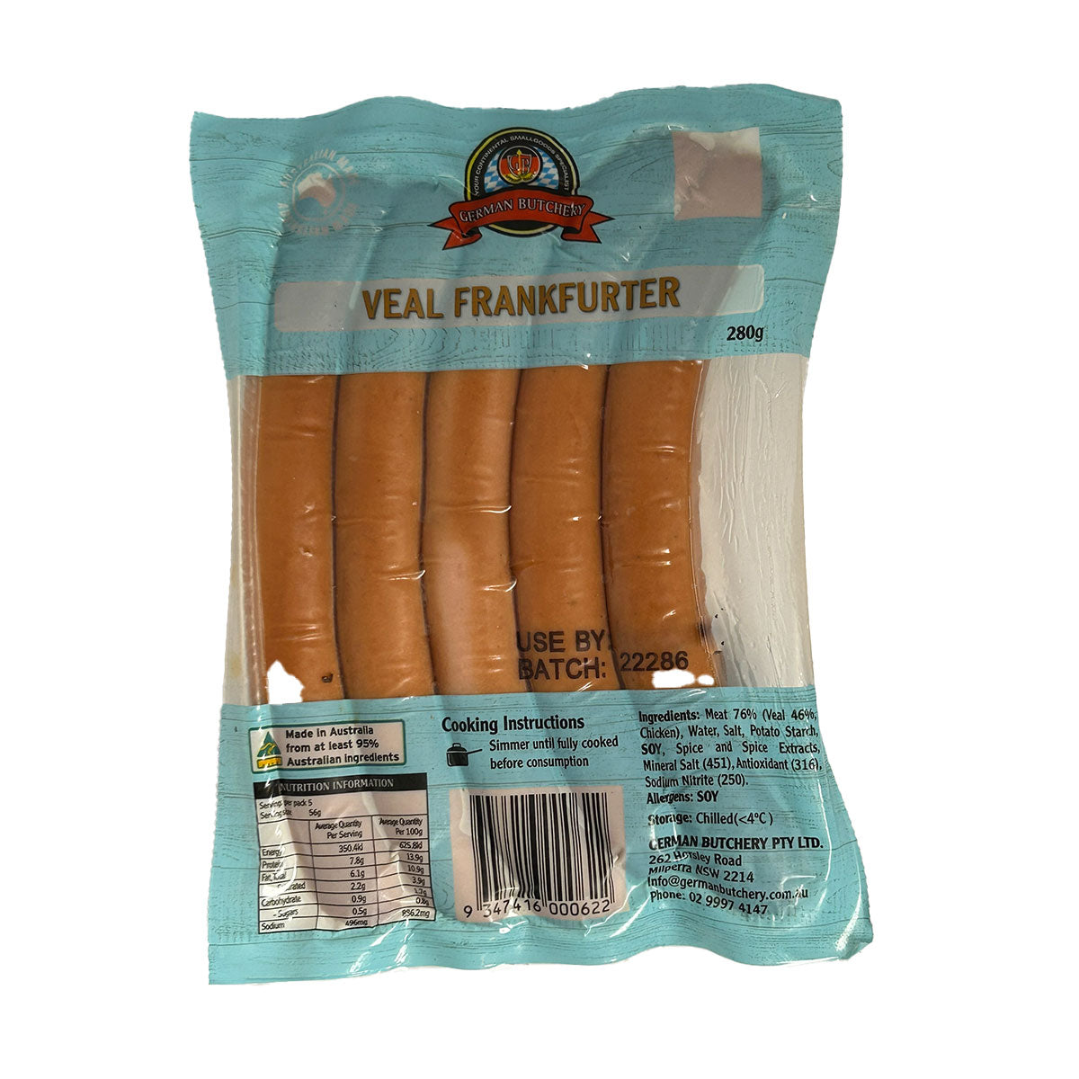 Indulge in the authentic taste of Germany with our Veal Frankfurters. Made with premium veal and traditional spices, these sausages are perfect for grilling or pan-frying. Each pack contains 5 sausages, totaling 280g, providing a convenient and delicious meal option for any occasion. Elevate your next BBQ or dinner with our German Butchery Veal Frankfurters!