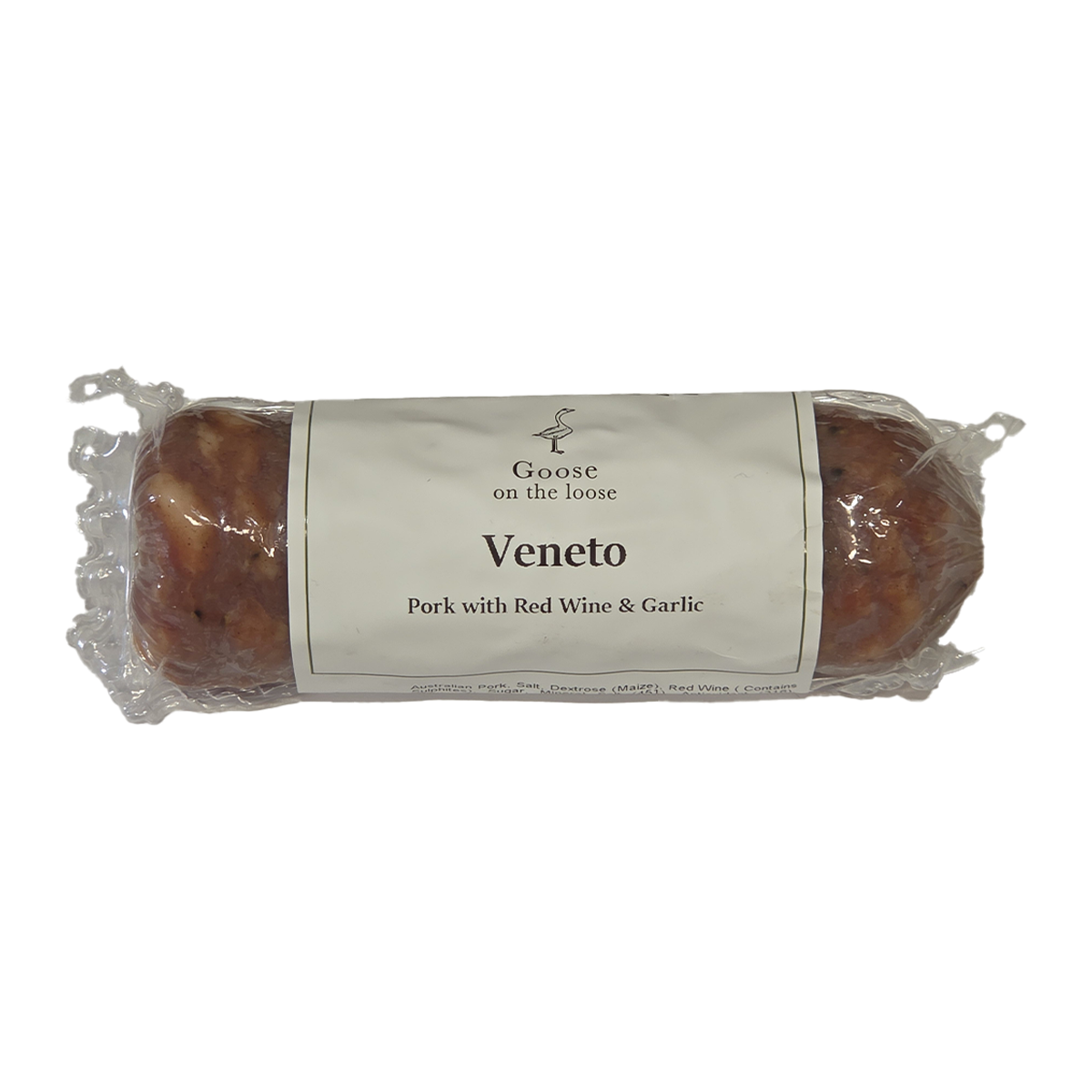 Tender Veneto pork infused with rich red wine and garlic flavors. Elevate your meals with Goose on The Loose's premium 250g pork offering.