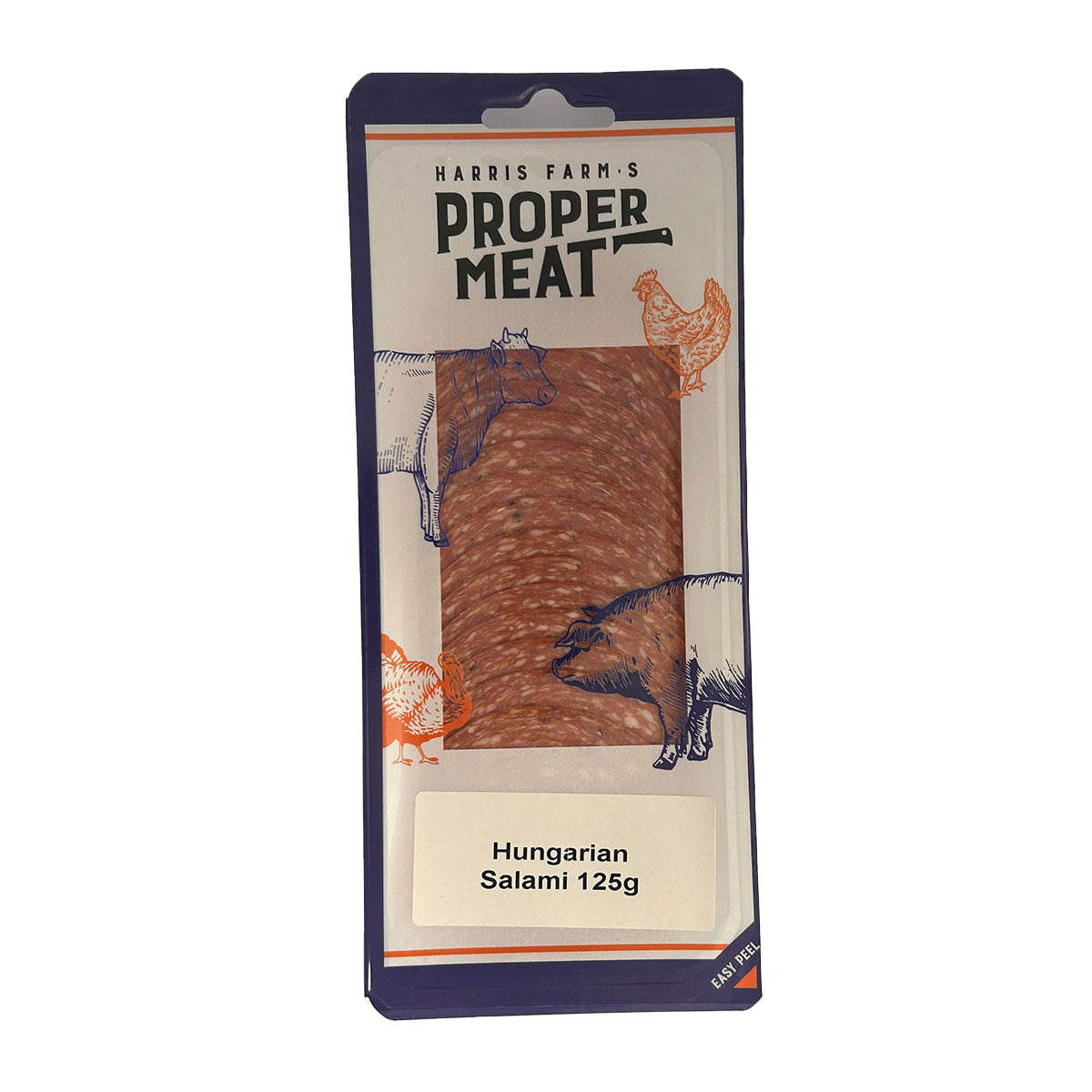 Harris Farm Hungarian Salami 125g: Indulge in rich, authentic flavors with our premium Hungarian Salami. Crafted with the finest ingredients, this savory delicacy is perfect for adding a touch of European charm to your charcuterie board or sandwiches. Elevate your culinary experience with Harris Farm Hungarian Salami today!