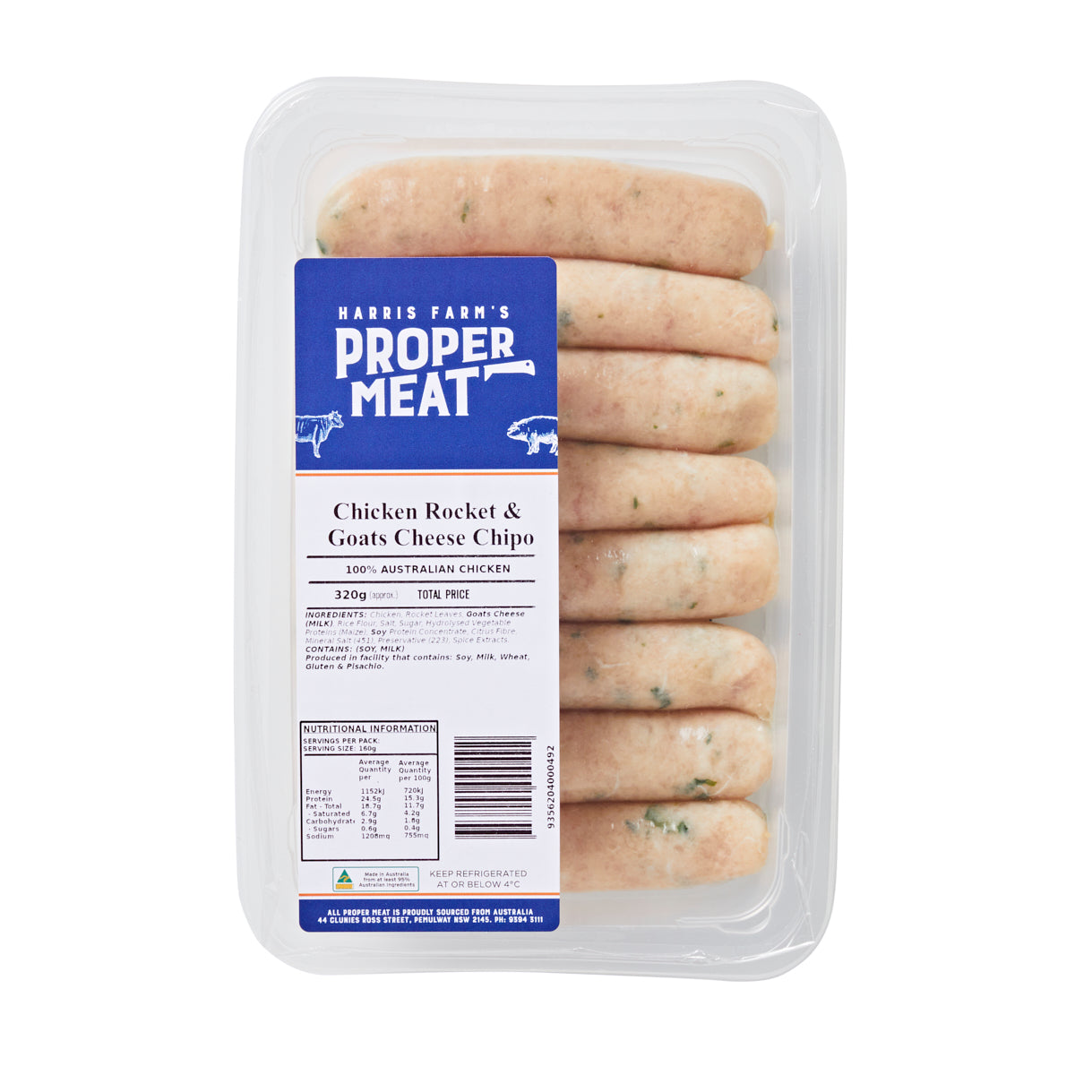 Harris Farm's Proper Meat Chicken, Rocket and Goats Cheese Chipolatas