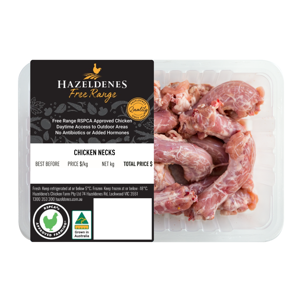 Hazeldenes Free Range Chicken Necks 1kg are a nutritious and flavorful option for your pet's raw diet. Packed with essential nutrients and made from high-quality free-range chicken, these chicken necks promote healthy teeth and gums while satisfying your pet's natural instinct to chew. Give your furry friend a delicious treat that supports their overall well-being with Hazeldenes Free Range Chicken Necks 1kg.