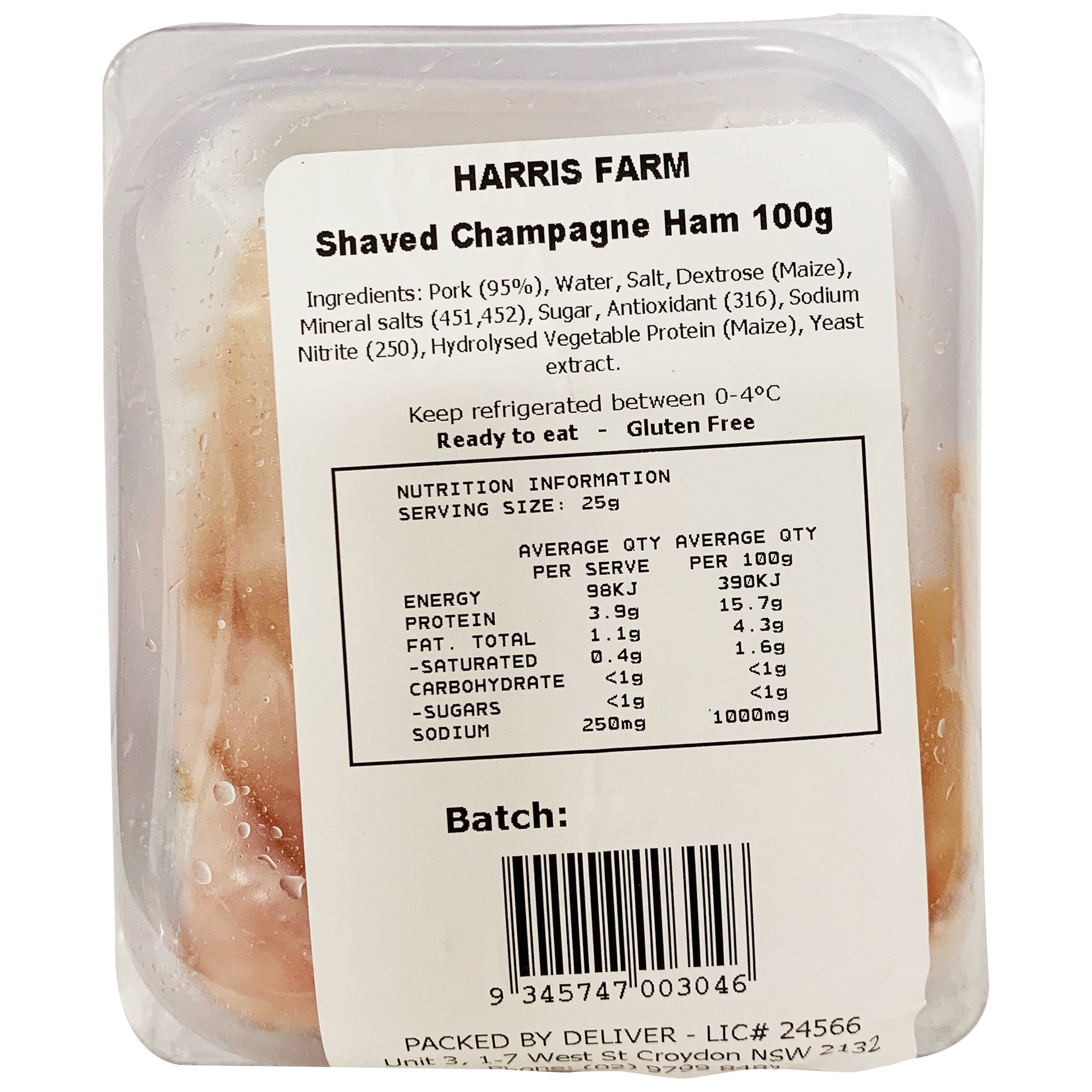 Indulge in the exquisite taste of Harris Farm's Shaved Champagne Ham. Made from premium ingredients, this 100g pack offers a luxurious and flavorful experience. Perfect for adding a touch of elegance to your charcuterie board or sandwiches. Elevate your meals with this gourmet ham today.