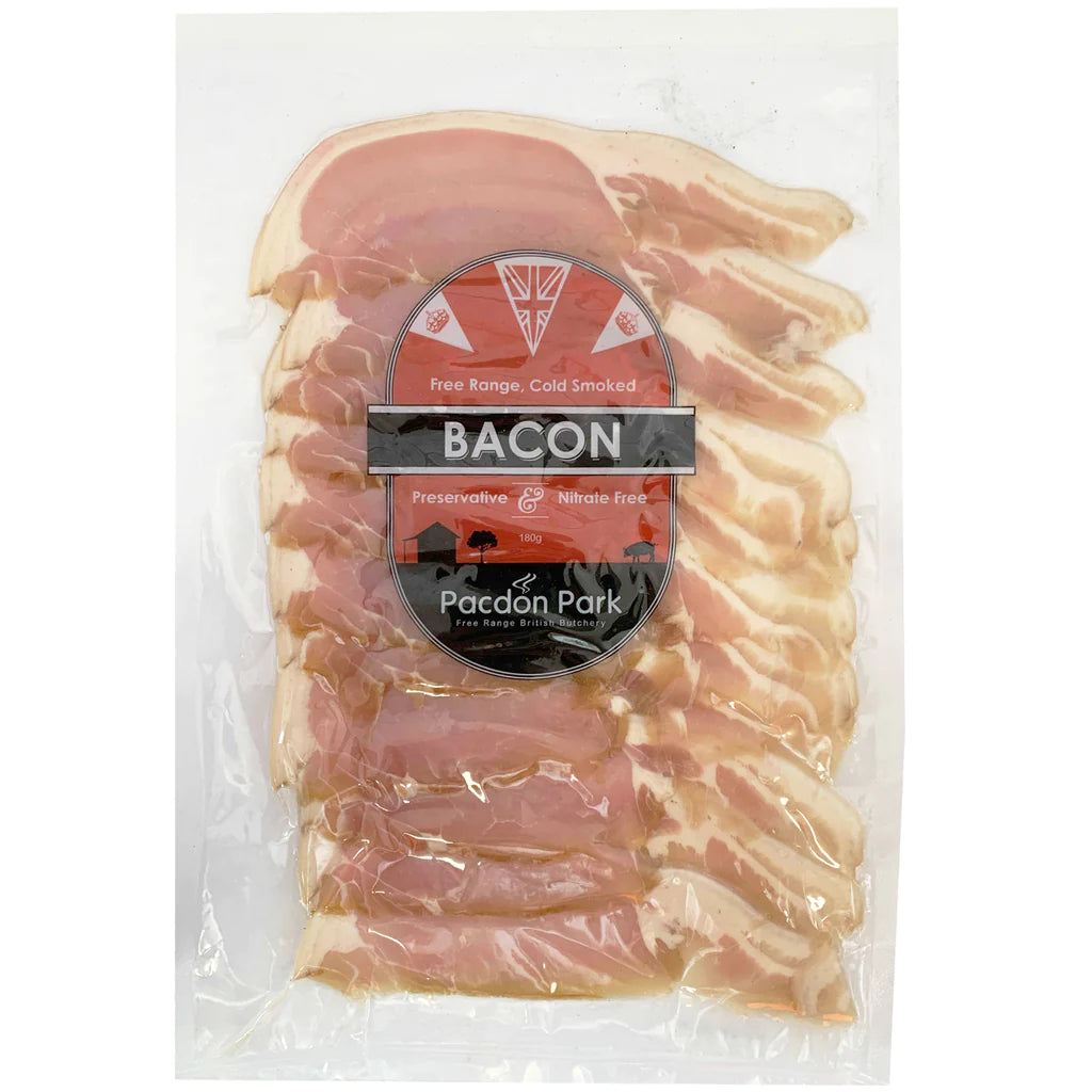 Pacdon Park Streaky Bacon 180g: Indulge in premium quality, handcrafted bacon that guarantees crispy perfection every time. Elevate your breakfasts and recipes with our flavorful bacon, made with care and expertise. Enjoy the convenience of a 180g pack for quick and delicious meals. Experience the difference with Pacdon Park Streaky Bacon today.