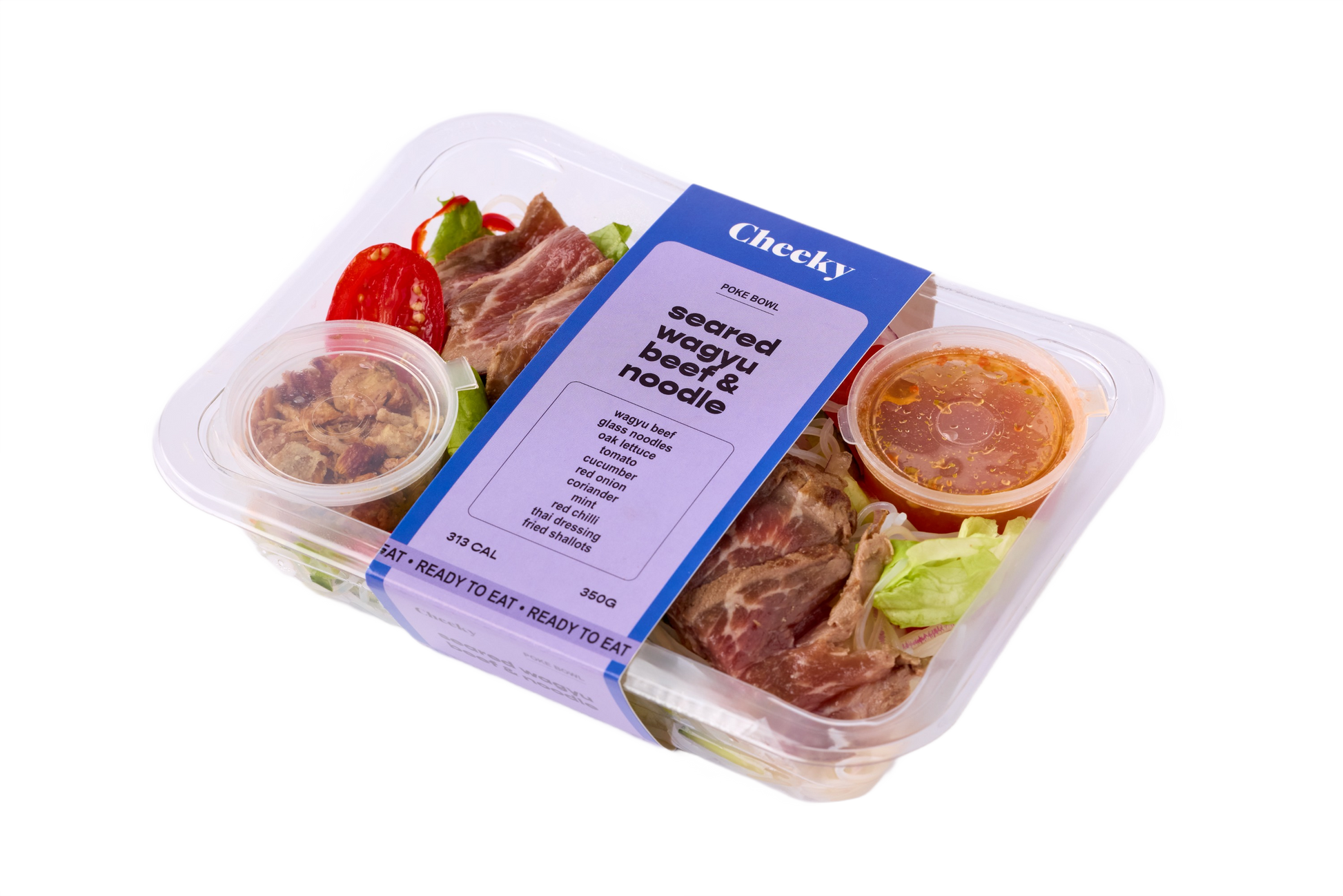 Indulge in the rich taste of seared Wagyu beef paired with delicate noodles in this 350g Cheeky Poke bowl. Complemented by fresh vegetables and a refined dressing, this dish offers a luxurious blend of flavors and textures, perfect for a sophisticated and satisfying meal.