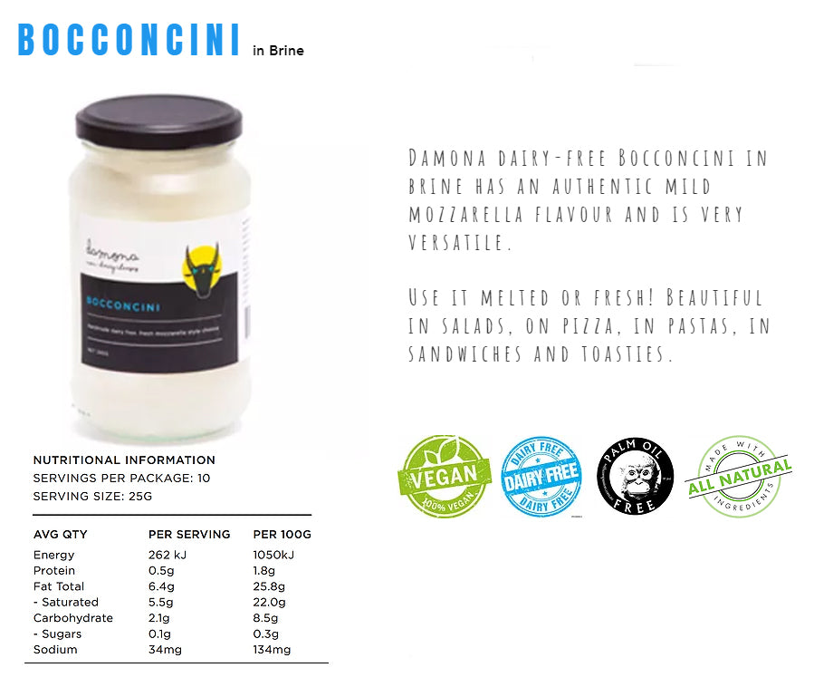 Indulge in the rich and creamy taste of Damona Dairy-Free Bocconcini. Made from high-quality ingredients, this plant-based cheese alternative is perfect for those seeking a delicious dairy-free option. Enjoy the convenience of a 240g pack, ideal for adding a touch of luxury to your favorite dishes. Elevate your culinary creations with Damona Dairy-Free Bocconcini today.