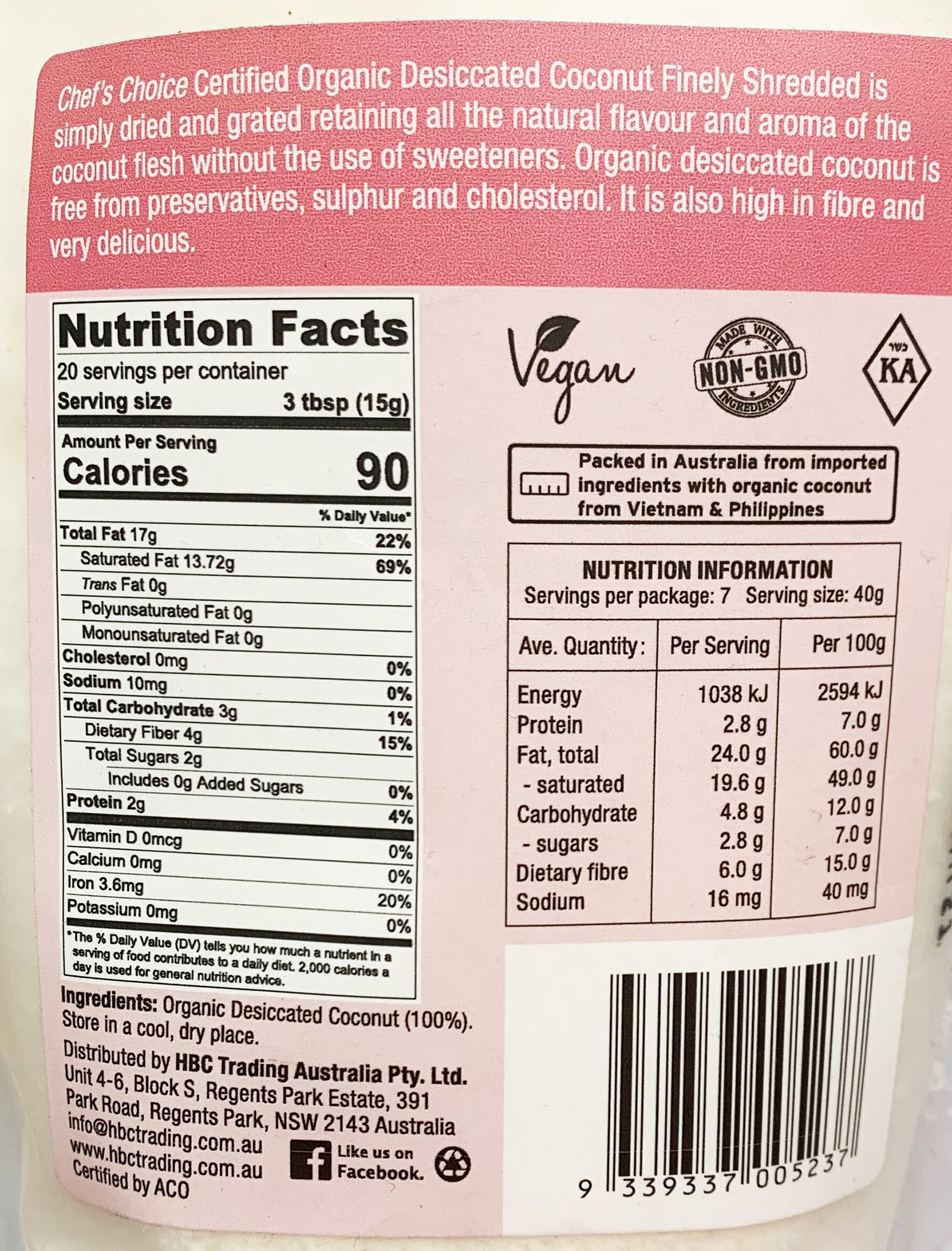 Chef's Choice Organic Finely Shredded Desiccated Coconut