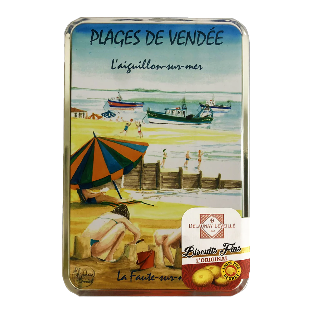 Delauny Leveille Umbrellas Biscuit Tin 300g: Indulge in a delightful assortment of buttery biscuits in a charming tin. Perfect for gifting or enjoying yourself. Shop now for a taste of luxury!