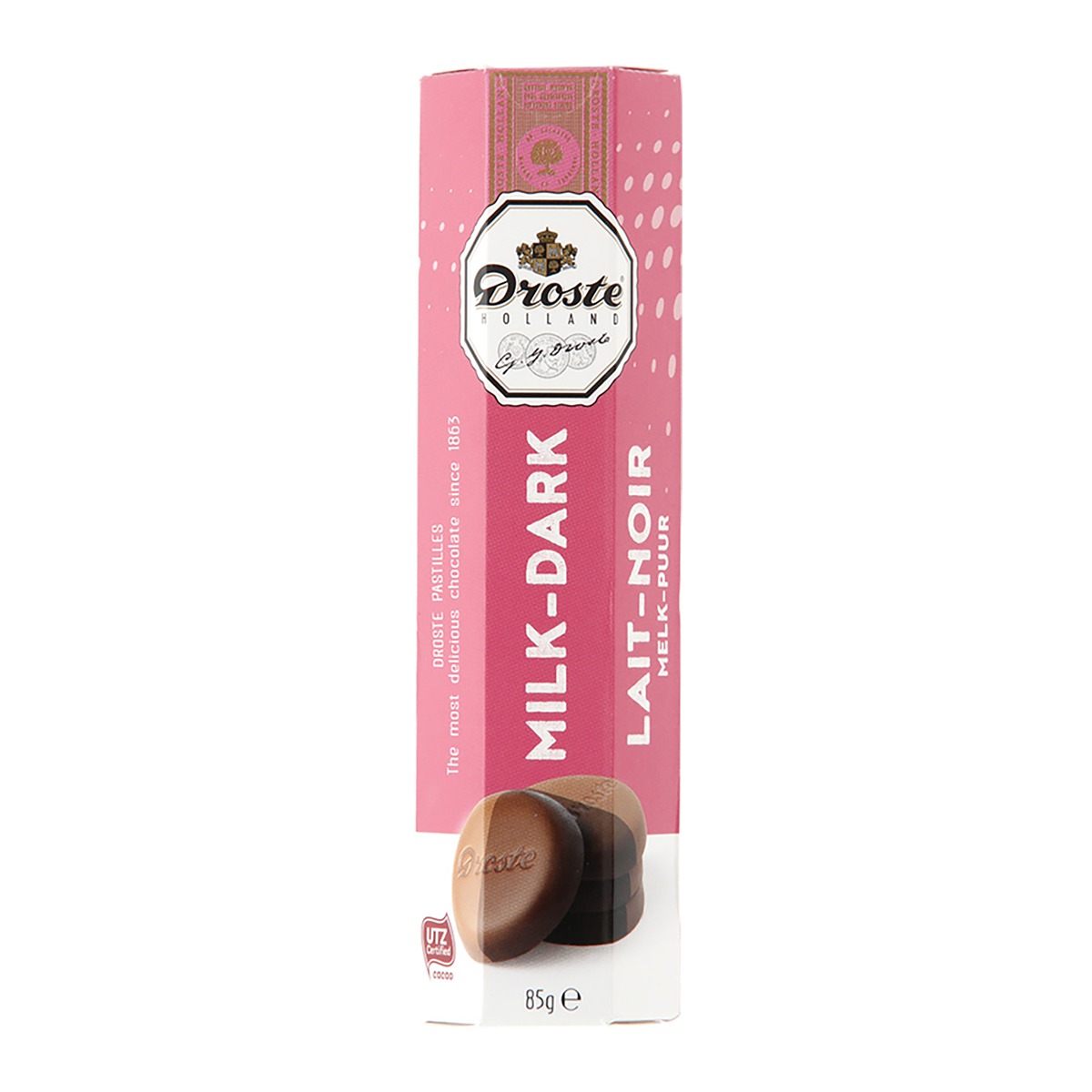 Indulge in the rich and creamy taste of Droste Rolls Milk Dark Chocolate. Made with high-quality ingredients, this 85g treat is perfect for satisfying your sweet cravings. Enjoy the perfect balance of milk and dark chocolate in every bite. Treat yourself to a luxurious chocolate experience with Droste Rolls.