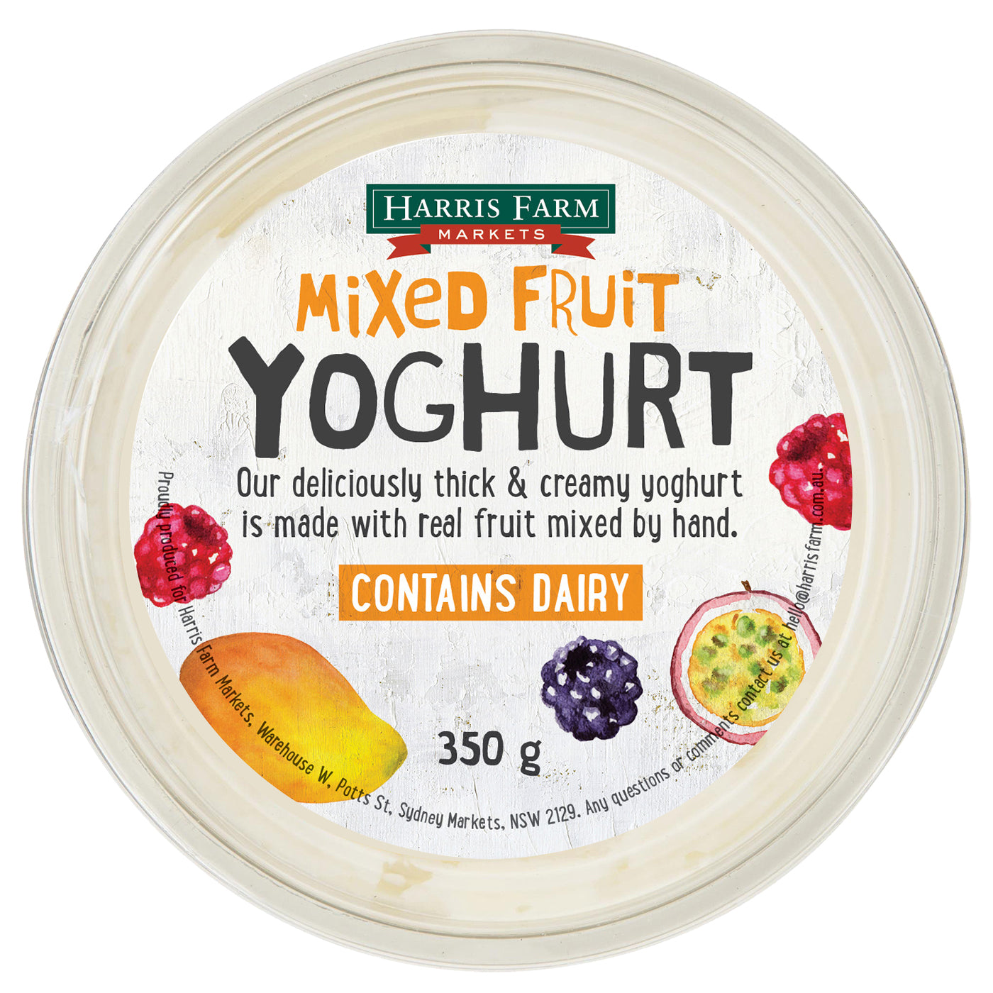 Enjoy the delicious blend of fresh fruits and creamy yogurt with Harris Farm Yoghurt Mixed Fruit 350g. Packed with natural goodness and bursting with flavor, this wholesome treat is the perfect way to start your day. Try it now for a delightful and nutritious snack that your taste buds will love!