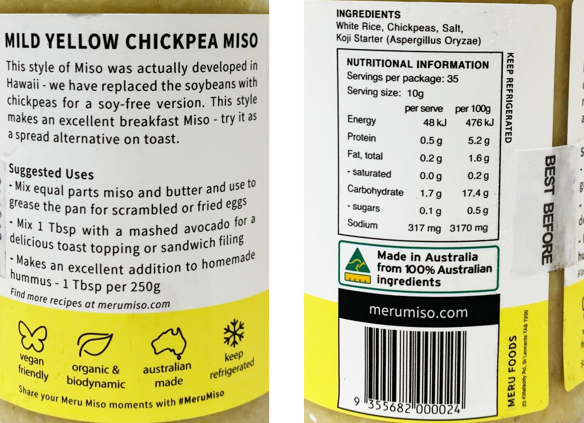 Meru Miso Mild Yellow Chickpea Miso 350g