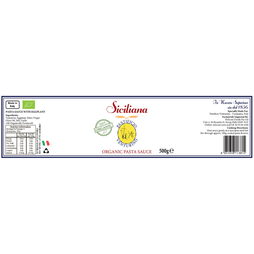 Sure! "Indulge in the rich flavors of Sicily with Pastificio Venturino Organic Pasta Sauce Siciliana 500g. Made with organic ingredients, this authentic sauce brings a taste of Italy to your table. Elevate your pasta dishes with the bold and savory notes of this Sicilian-inspired sauce. Buon appetito!"
