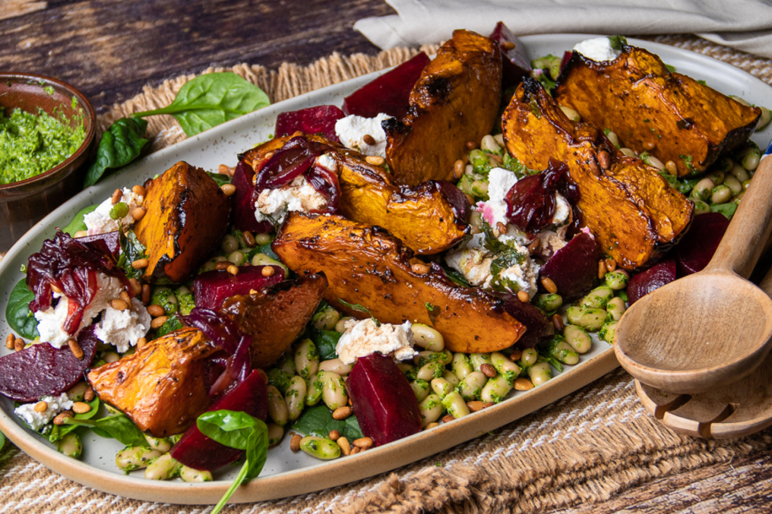 Persian Style Roasted Pumpkin - with Cannellini Beans, Salsa Verde and Beetroot