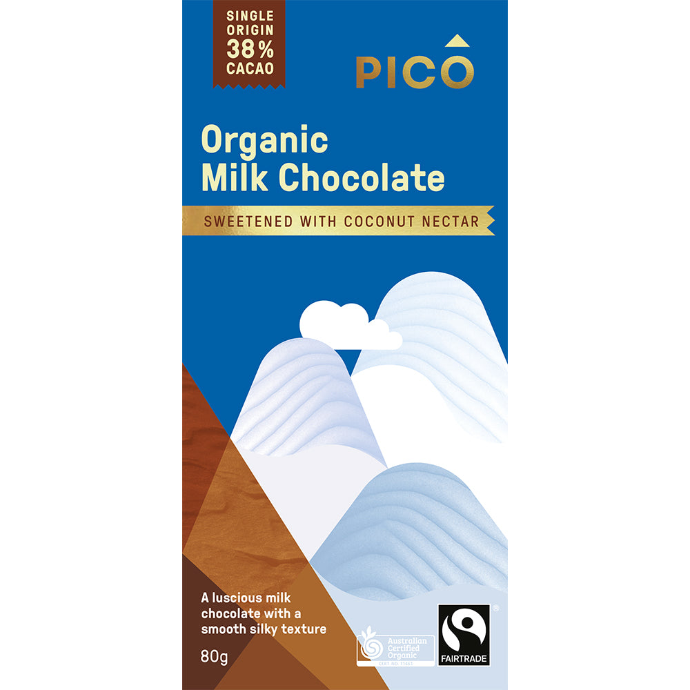 Indulge guilt-free with Pico's Organic Milk Chocolate. Savor the rich, creamy taste of organic milk chocolate in every bite. Perfect for satisfying your sweet cravings while supporting sustainable farming practices. Enjoy 80g of pure chocolate bliss.