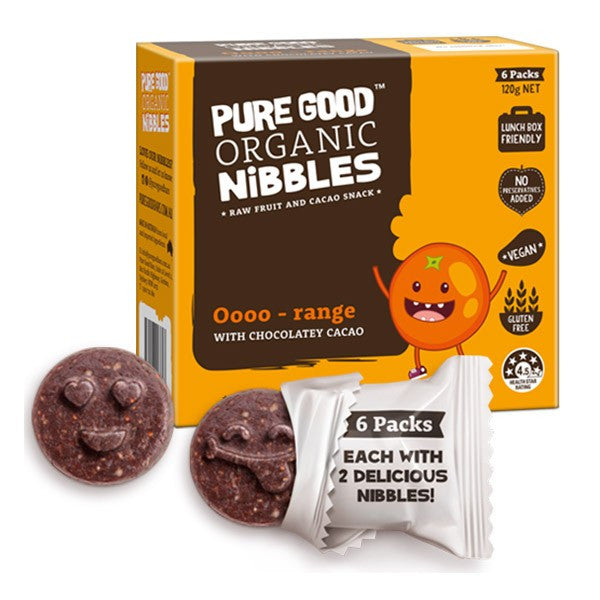 Indulge guilt-free with Pure Good Organic Nibbles Oooo Range in Orange & Cacao flavor. Made with premium organic ingredients, these 120g snacks are a deliciously healthy treat packed with antioxidants and natural goodness. Perfect for satisfying cravings while nourishing your body.