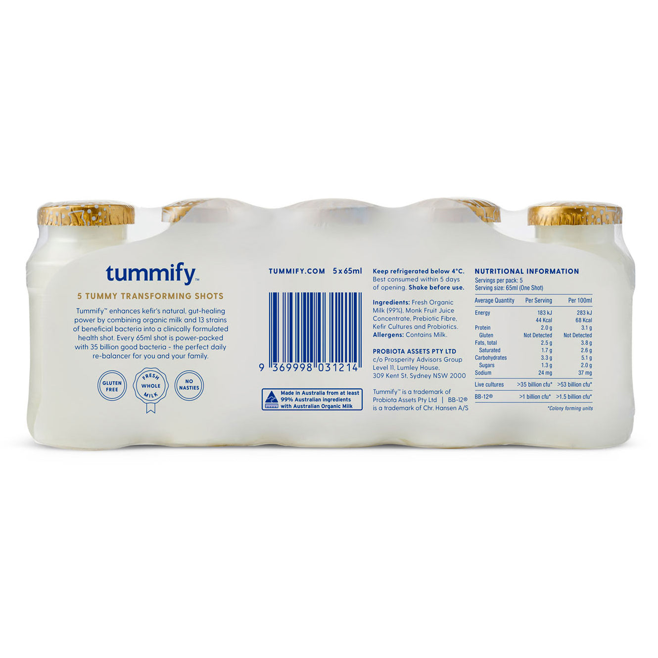 Boost your gut health with Tummify Organic Probiotic Shot 5x65ml. Packed with live cultures, this convenient shot supports digestion and strengthens your immune system. Say goodbye to bloating and hello to a happier, healthier you!